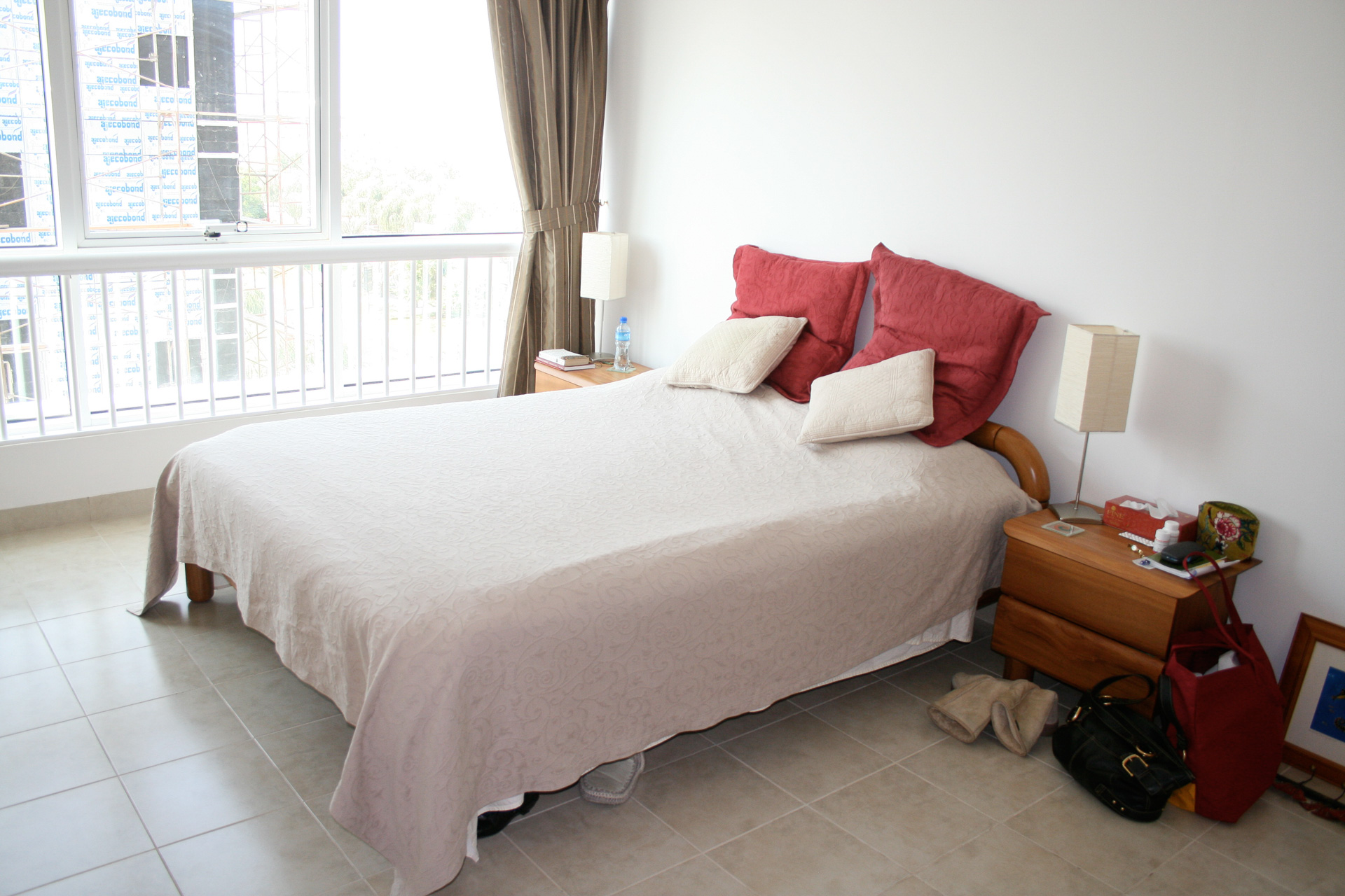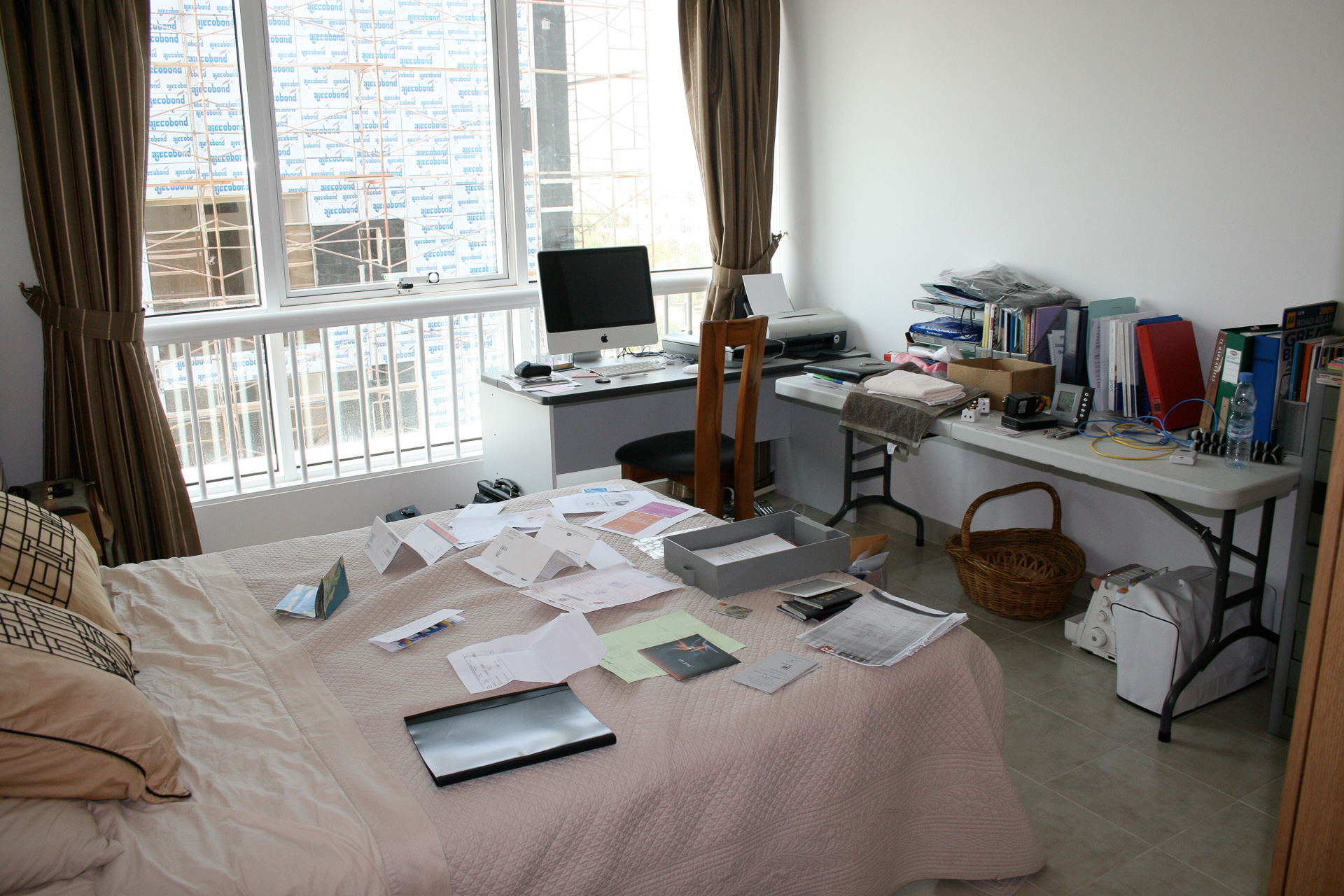 Unfortunately the spare room is a bit more cramped as it doubles as an office space. This is where we are sitting when we are talking on Skype. If you are coming to visit, this is your room. I promise to clear some of the mess before you get here.