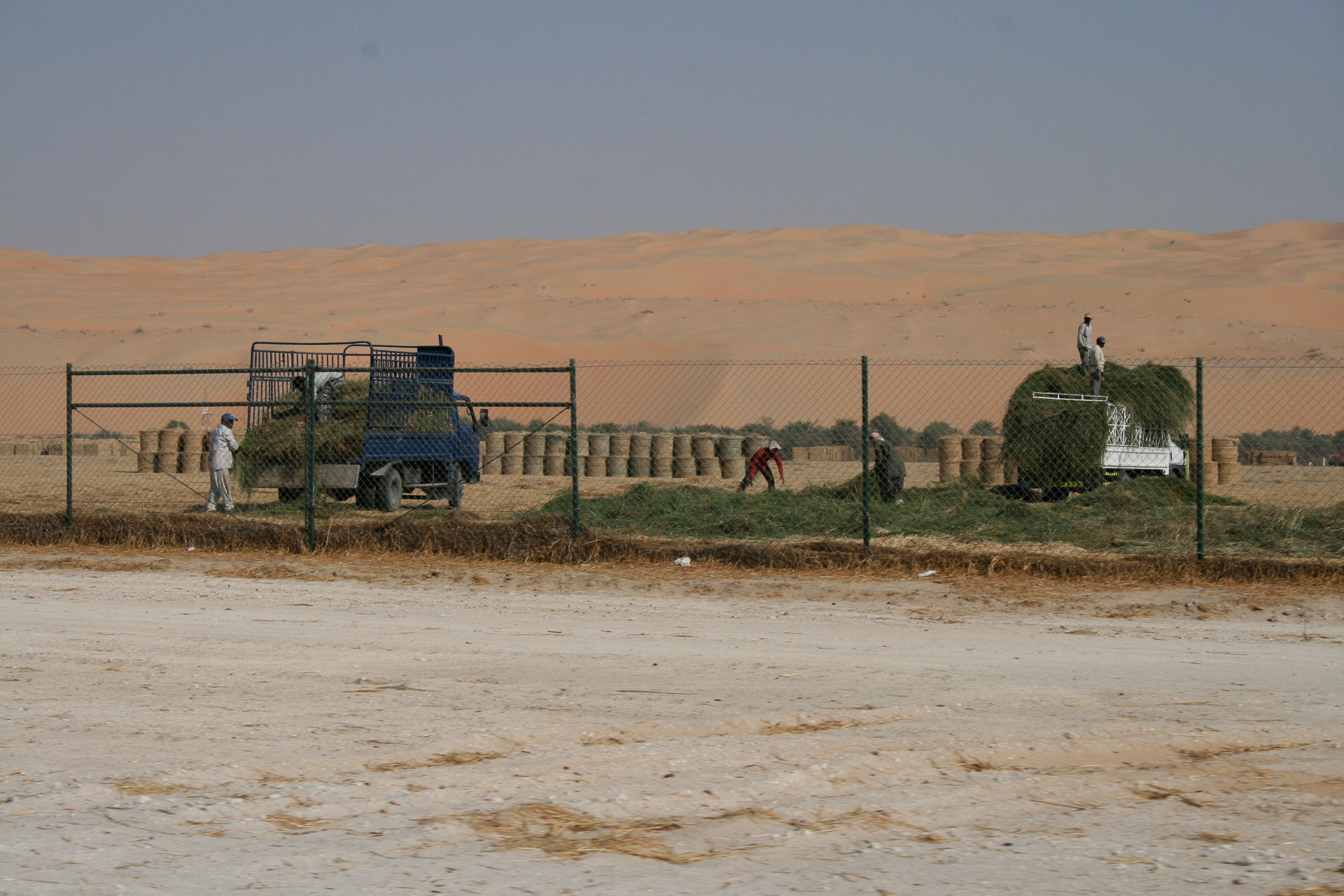 The underground water supply that created the oasis is put to good use with lots of plantations of date palms but also smaller plots that look to be growing a variety of vegetable crops. There are also large areas of ‘Fodder Farms’ devoted to growing hay which is used to feed the camels which can be seen roaming the sand dunes.