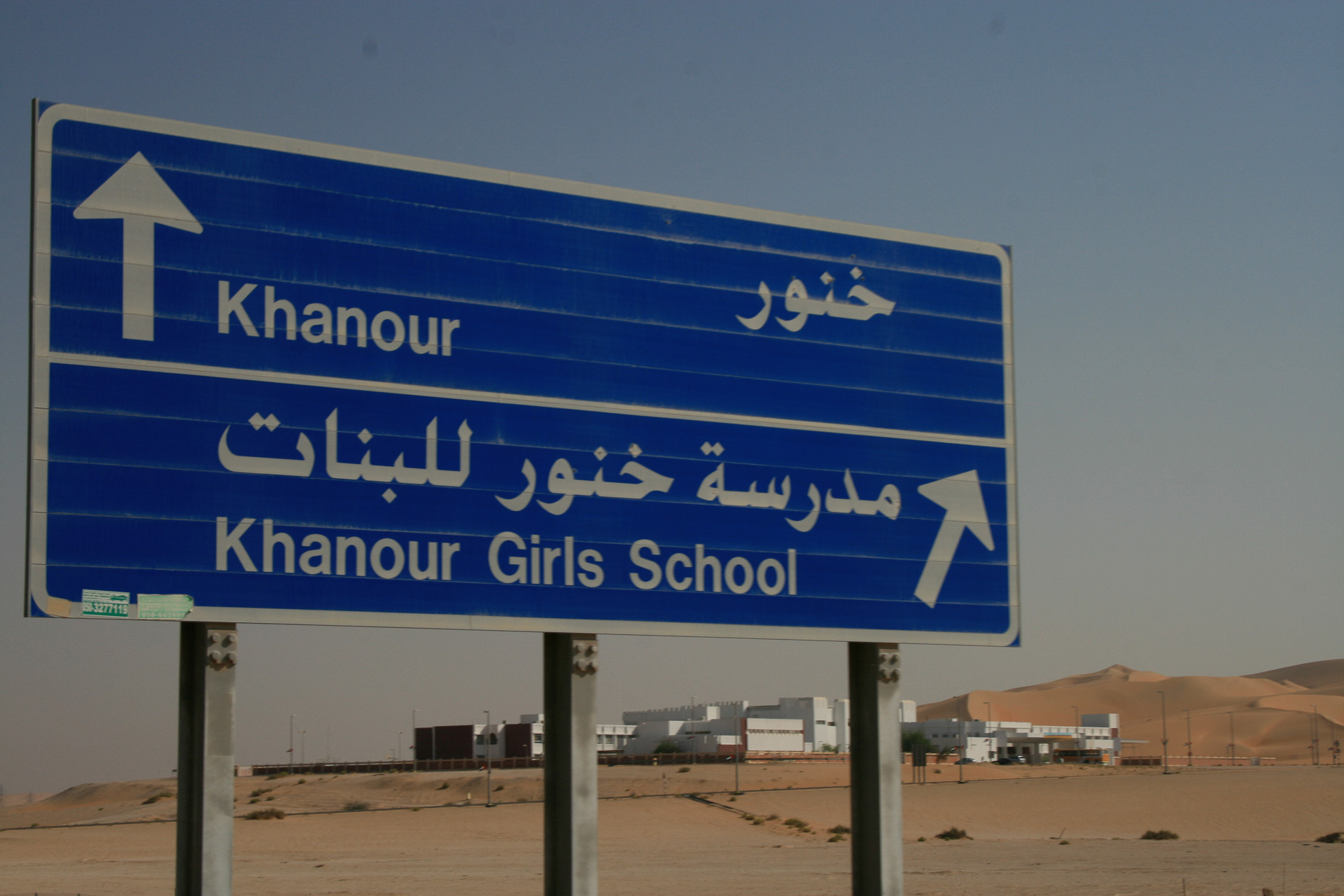 Most signs are in Arabic and English which is just as well. Unfortunately in this case the sign does not really help unless you have a little local knowledge. The school is actually called Moatah School. It really is in the middle of nowhere. No problem with girls sneaking out of school early and walking to the shops.