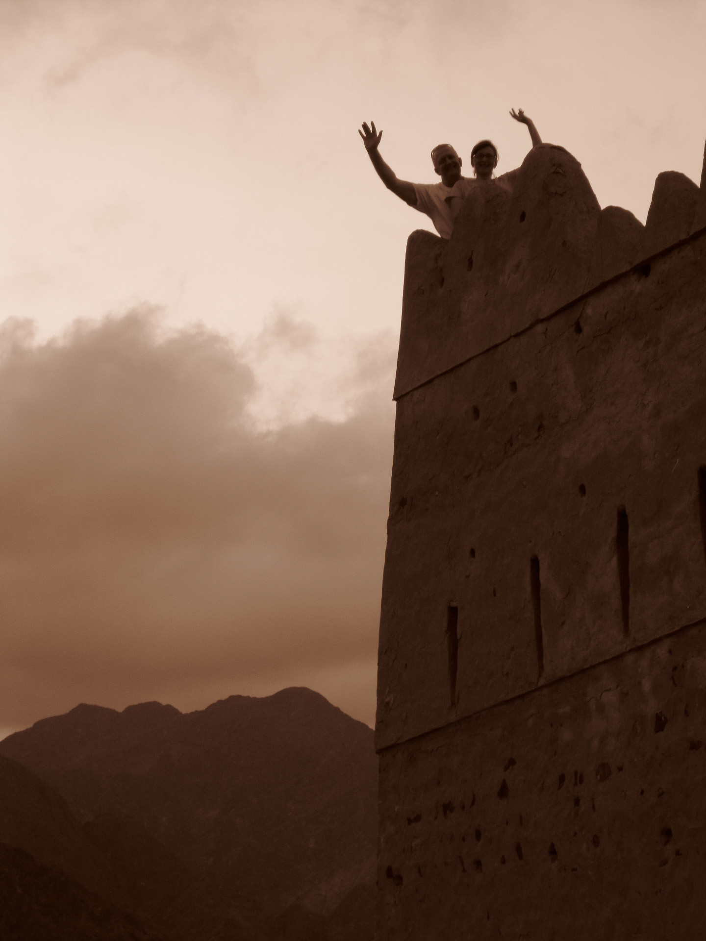 Fortuitous timing of two national holidays gave us a week off work. Eid Ul-Adha is the second Eid celebration and marks the end of the Haj and this was closely followed by the United Arab Emirates National Day. We celebrated both occasions by leaving Abu Dhabi and heading for Fujairah on the east coast. Traveling with Manda and Mark we saw some spectacular mountain scenery, visited fabulous old forts which are being restored, took a boat trip with a local fisherman and did more four wheel driving down steep sided wadis.