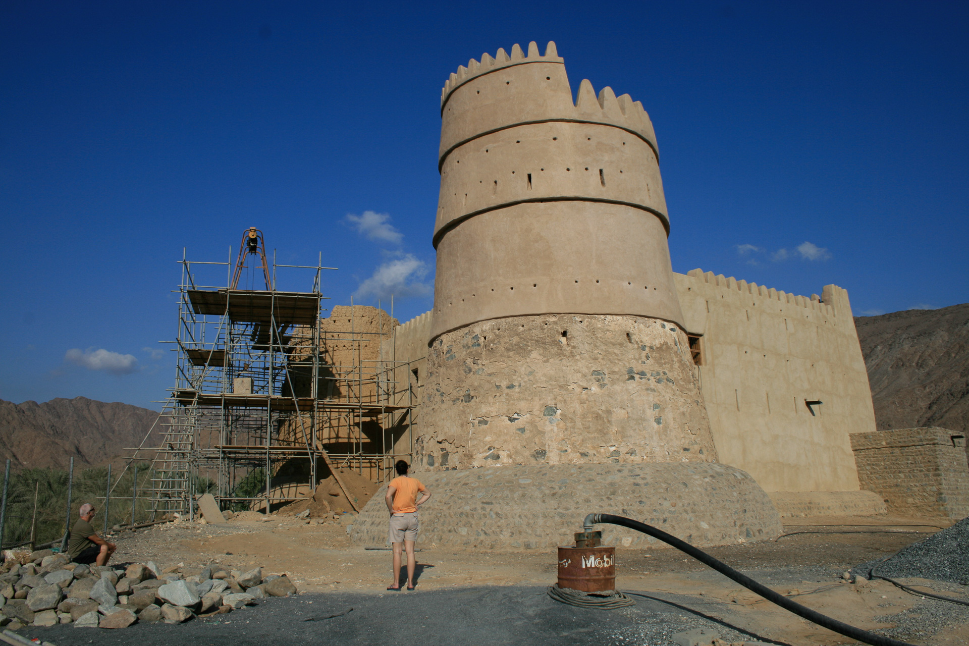 Restoration is still taking place on this 300 year old fort. High mountains make an impressive backdrop. Without the restoration the fort would crumble away.