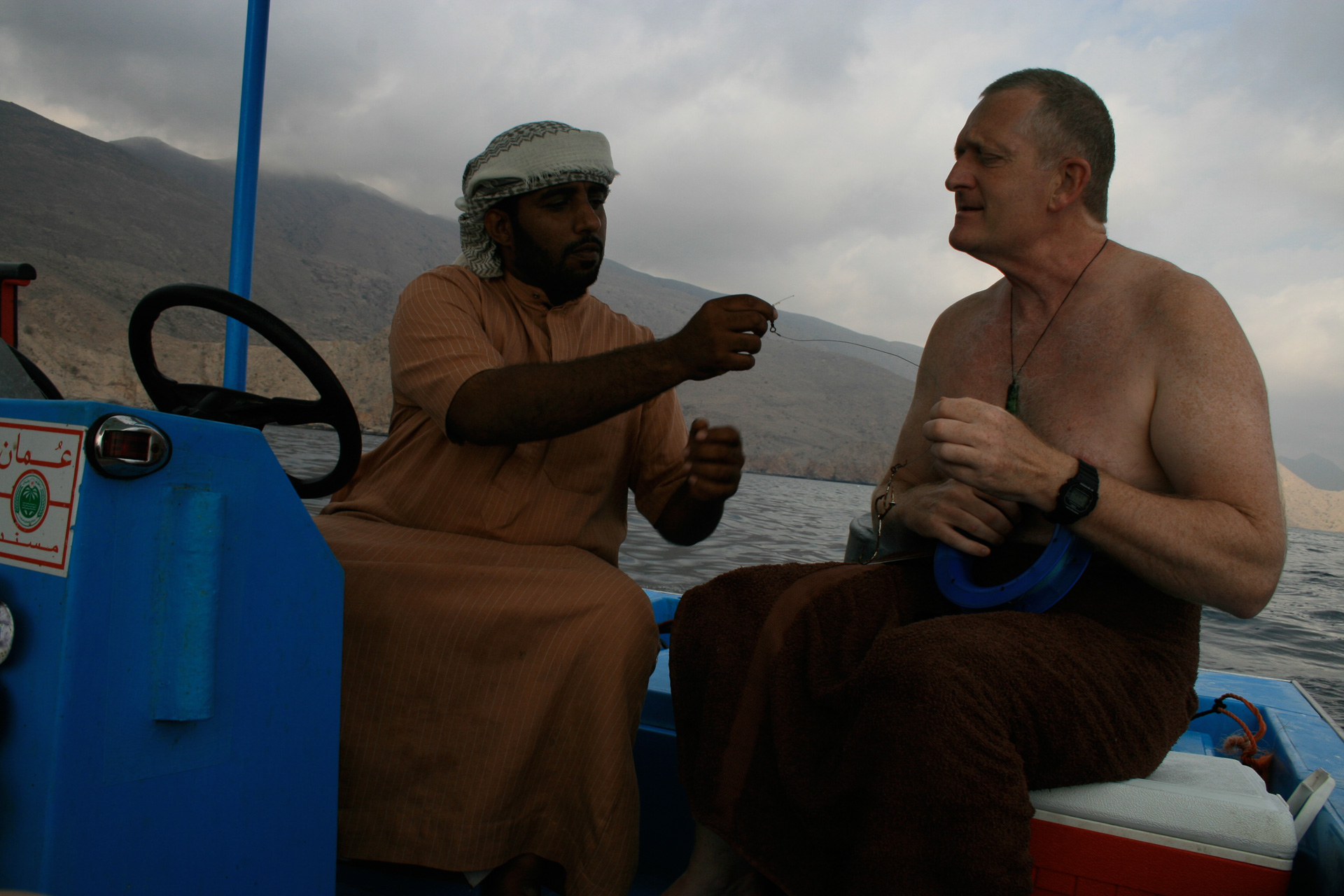The following day we travelled further north into Oman to the port of Dibba. Lots of tourist trips on dhows but still a working fishing port. Mark negotiated a private trip with this fisherman who also operated a small dhow.