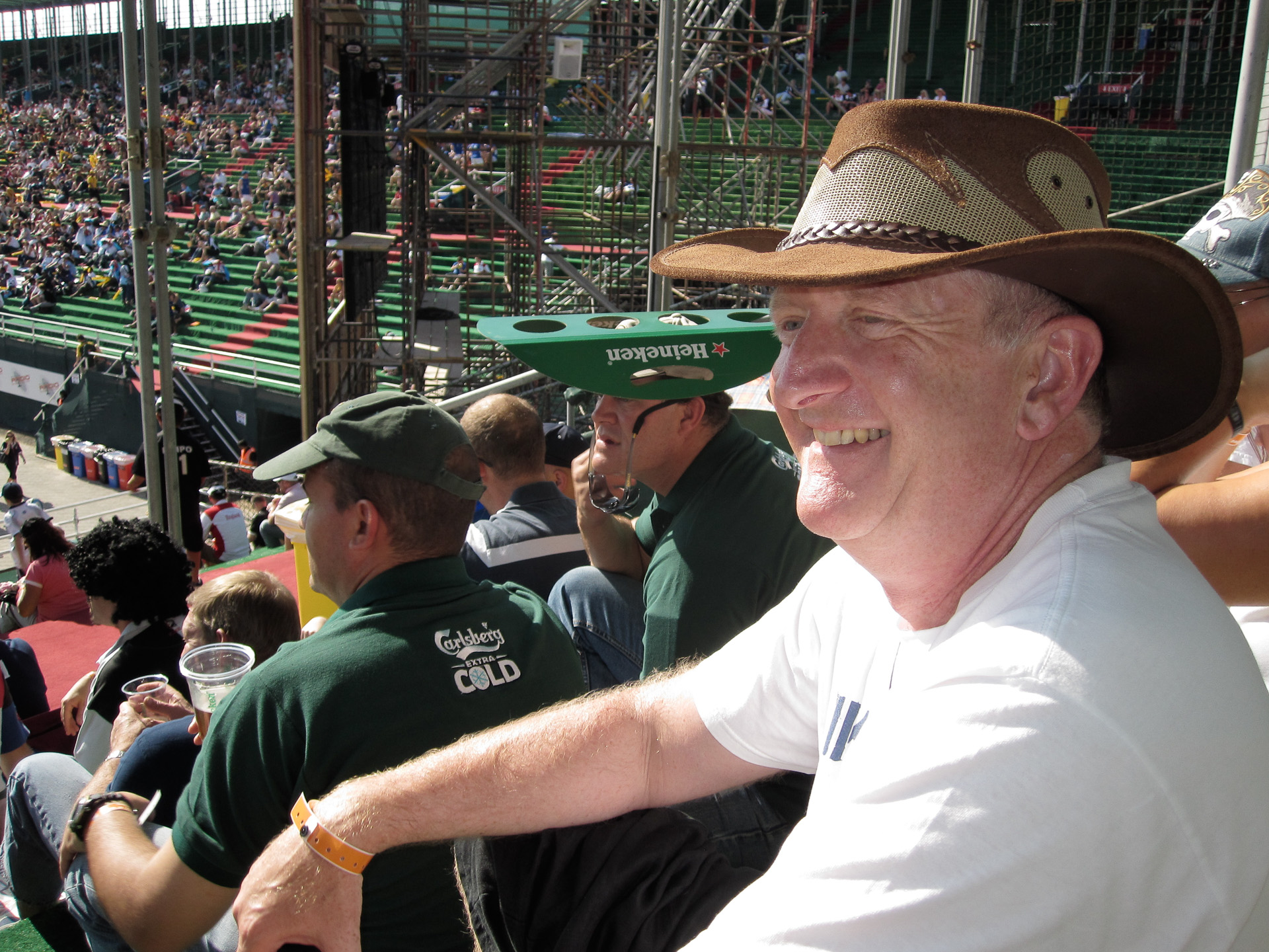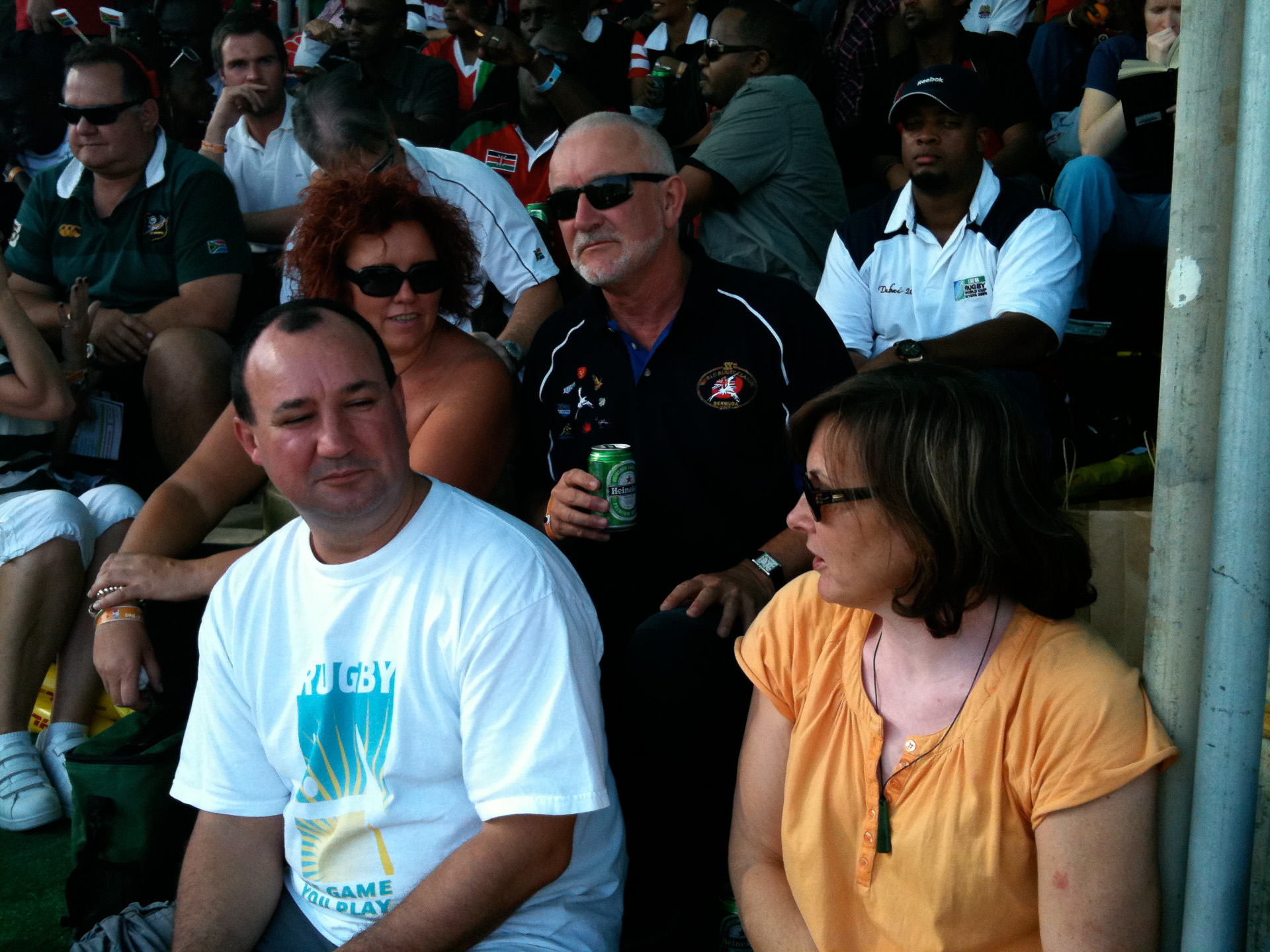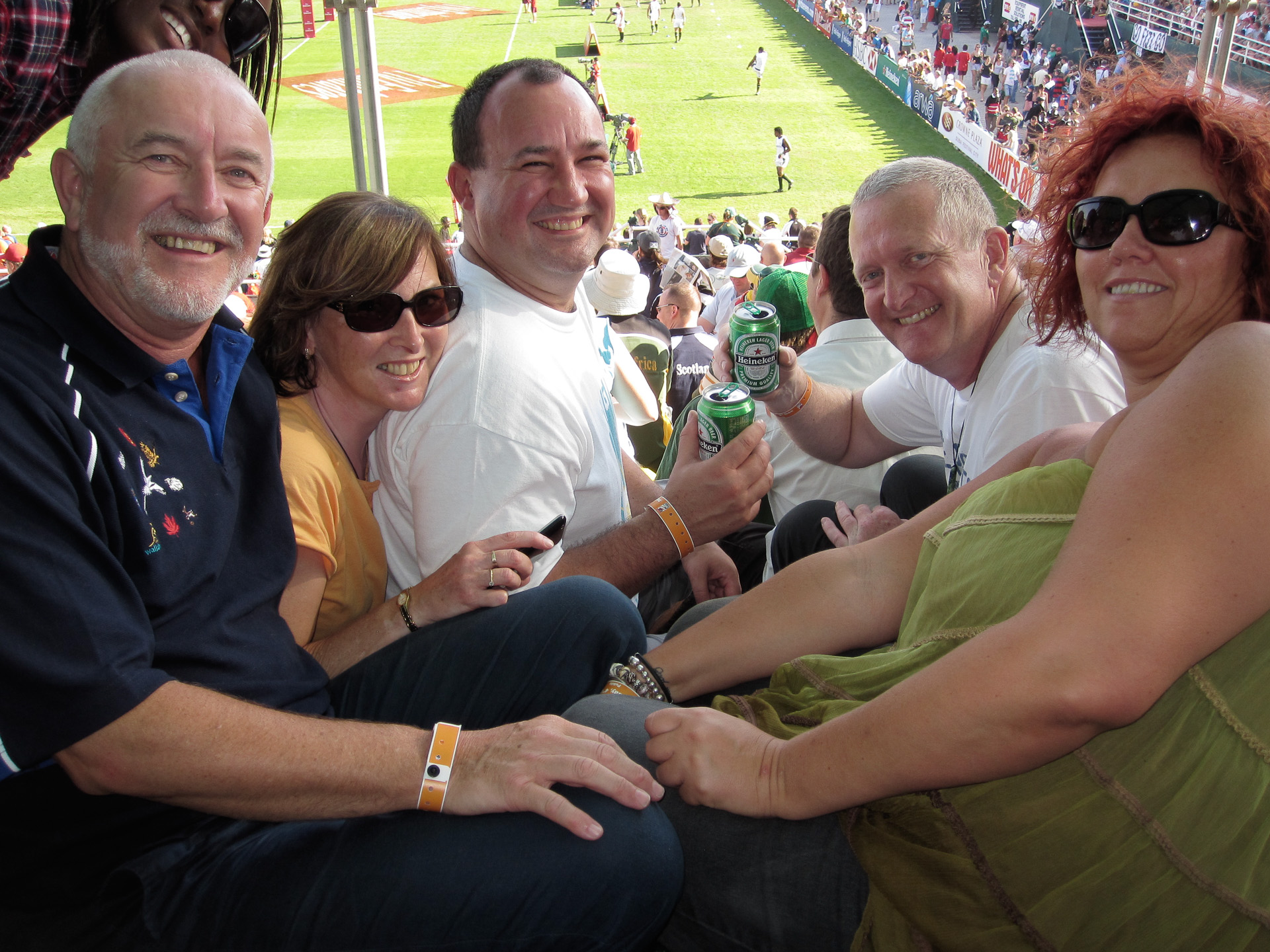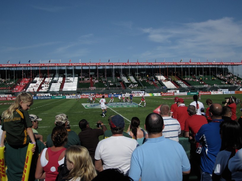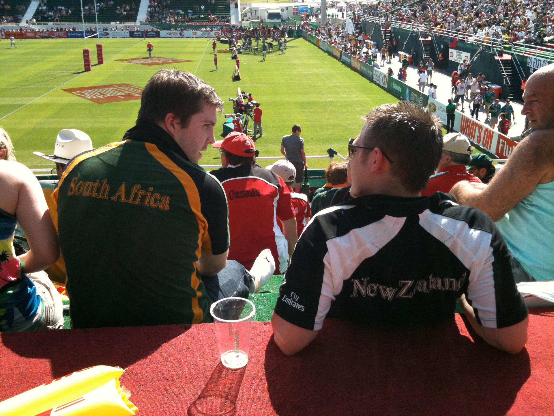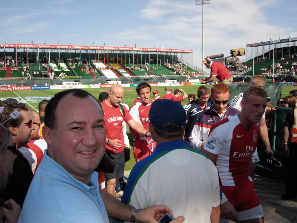 It was hard to believe that this was the UAE. Not a dishdash or abaya is sight and not too many Emirates. Instead we were treated to traditional western culture. Everybody getting pissed, making fools of themselves and generally having a good time. A small minority even watched the rugby.