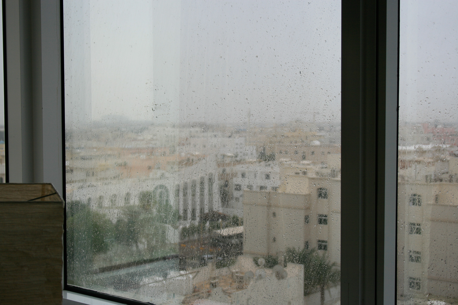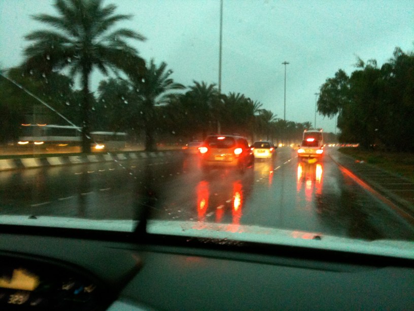 The picture above is us heading to work this morning. Dark and dismal. Could have been London except for the palm trees.