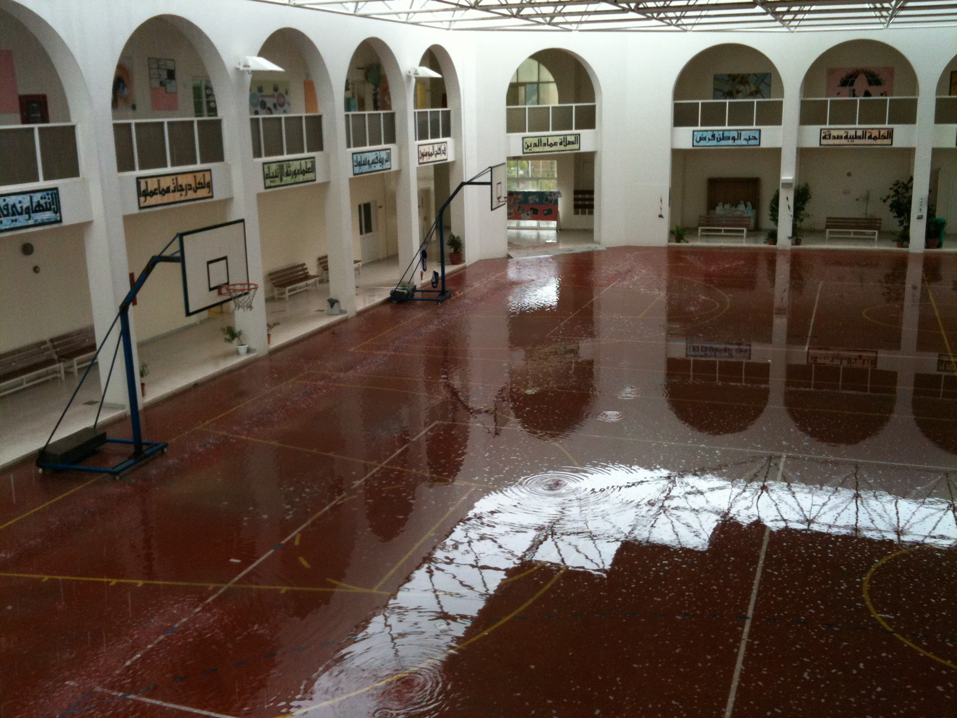 The main roads have some drains and looked OK but most of the side roads seemed to have some flooding. This is the road just outside Sue’s school and the courtyard inside.