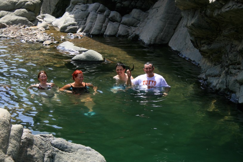 The challenge this time was the temperature. We picnicked by the car in 44 deg C and then burnt our hands on the rocks when we climbed out of the pool.