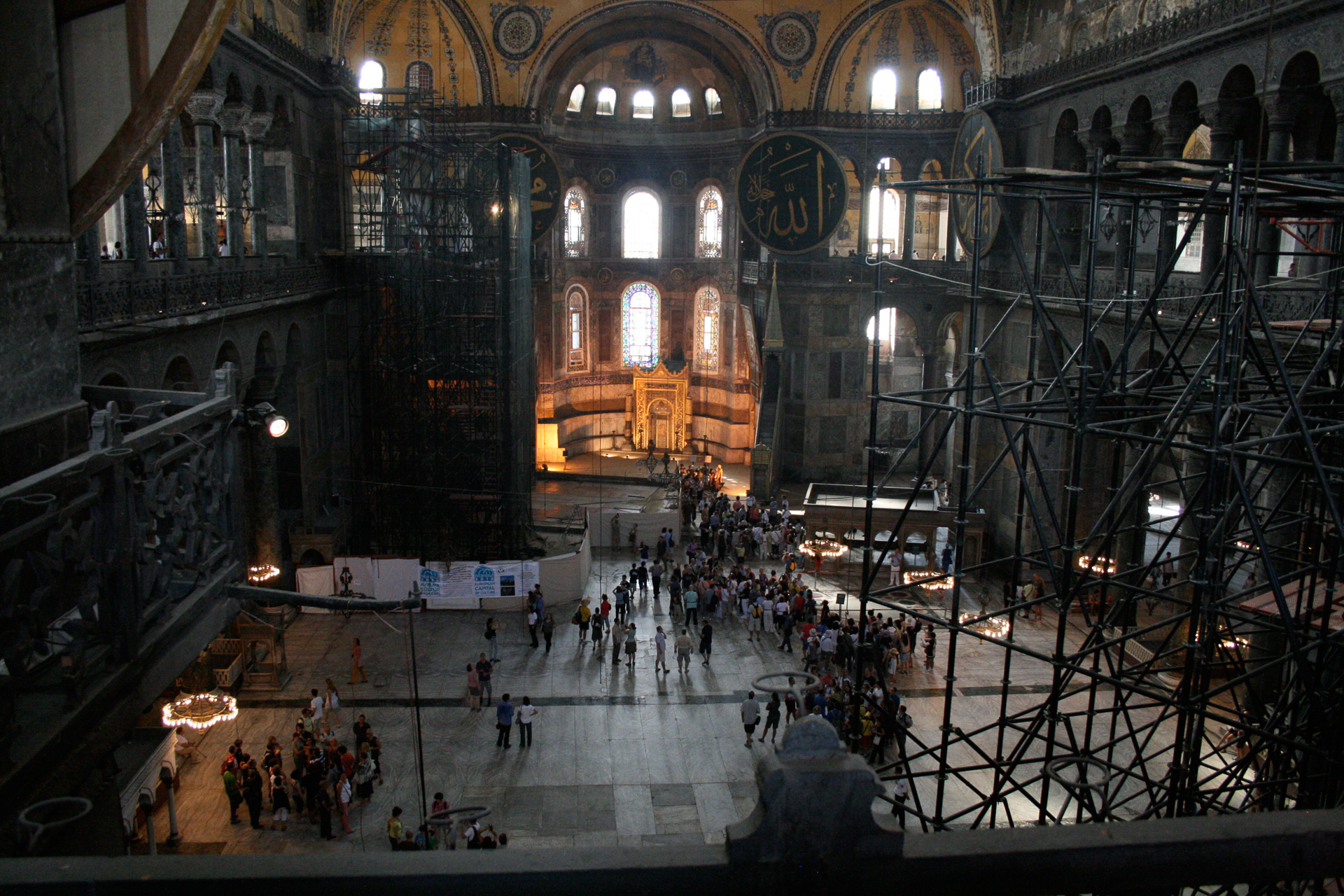 The Aya Sofya or Agia Sophia or Hagia Sophia was, for a considerable period of time, the largest church in the world. It was eventually converted into a mosque, hence the minarets, and today is simply a museum.