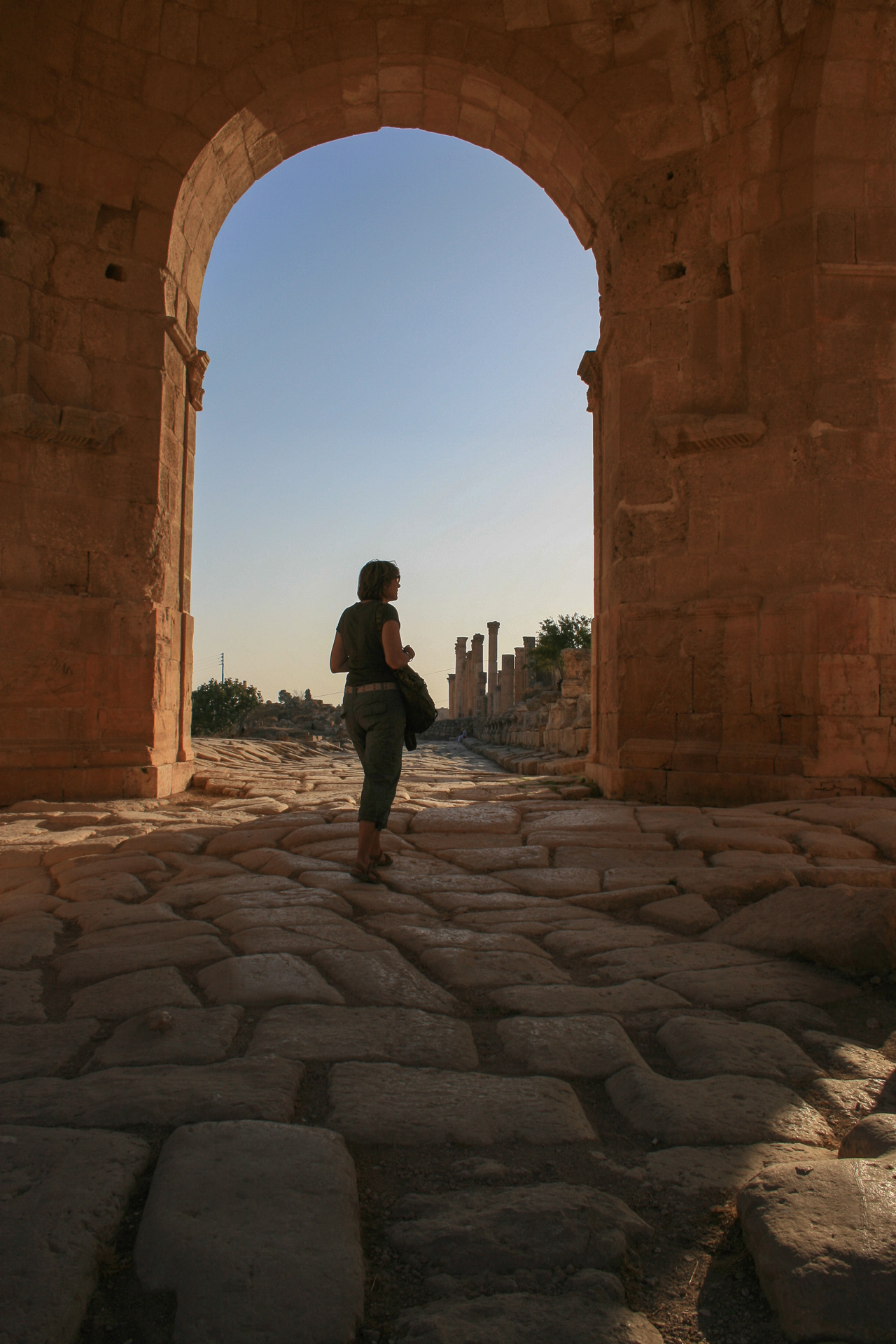 The site at Jerash is huge. We spent about 4 hours walking through, climbing over and gazing up at all manner of Roman ruins from the entrance at the Arch of Hadrian, past the hippodrome where mock chariot races are held daily, across the oval piazza with its magnificent colonnade and through temples and theatres.