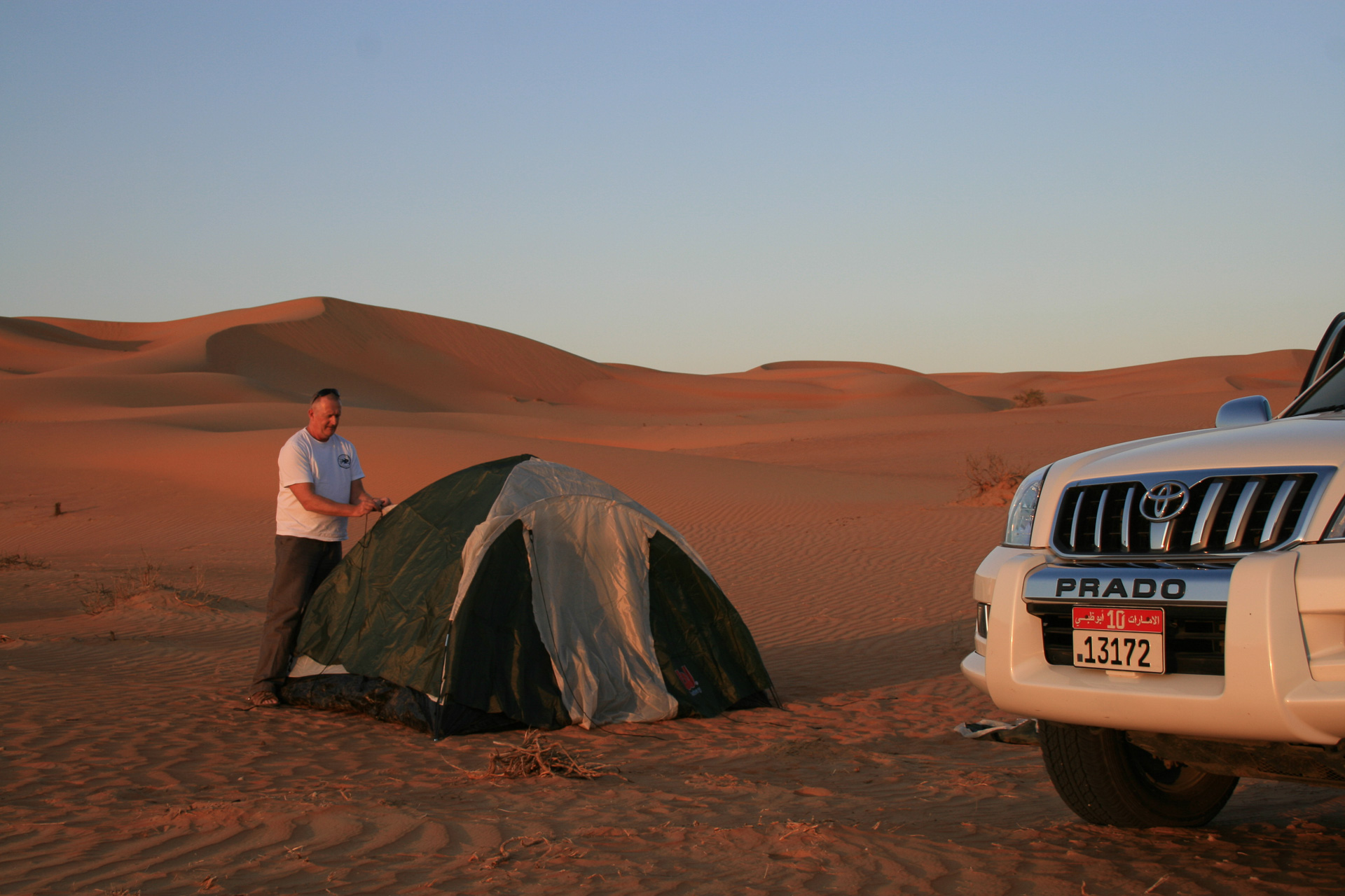 By now we were getting worried about finding a camp site. The reality is you can put up a tent anywhere you want. We eventually spotted a track leading down a very steep dune into a wide, flat valley and headed down.