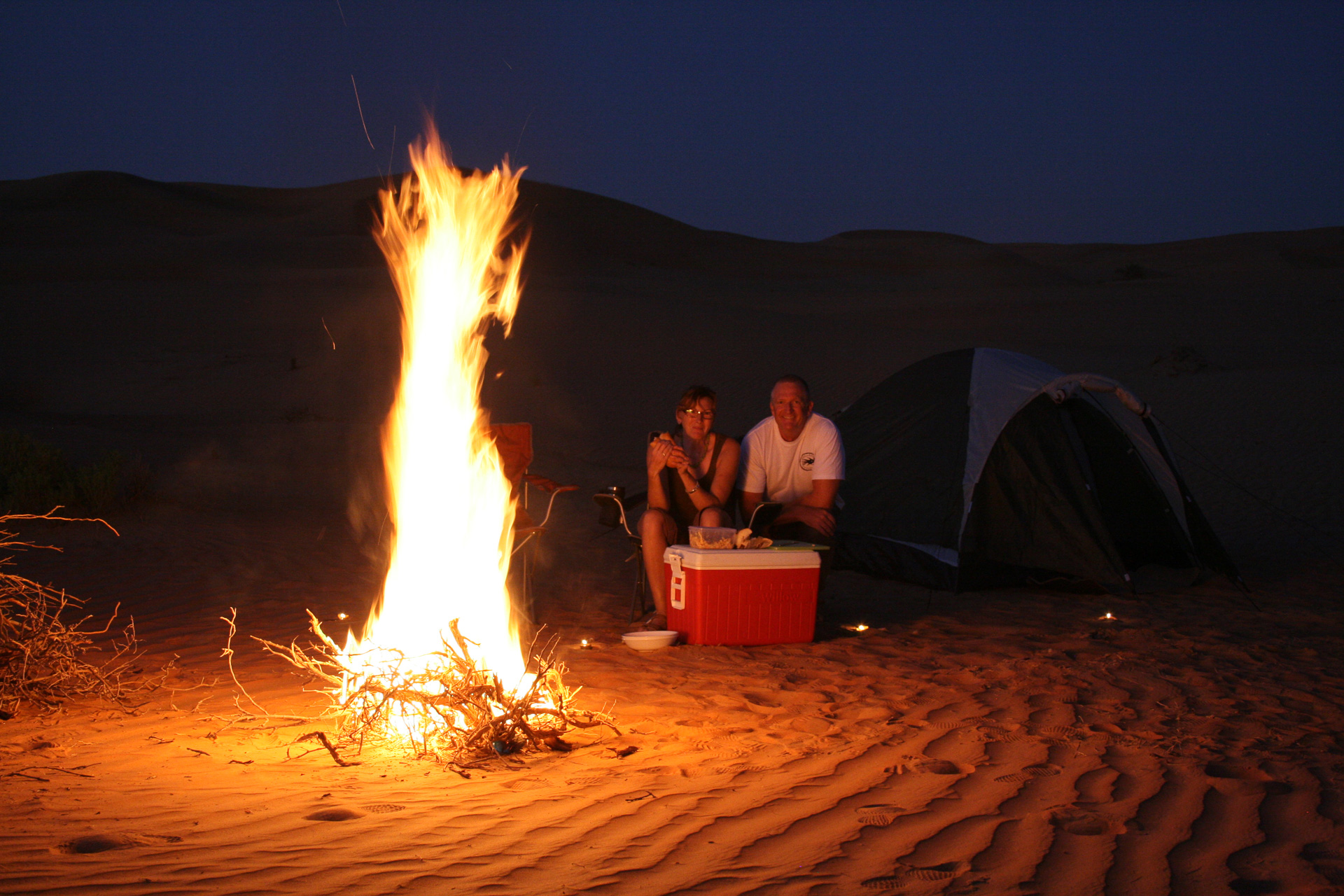 No instructions needed for the tent and plenty of dry wood around. So in no time we were supping G&T’s beside the camp fire gazing at an amazing desert starlit sky, crisscrossed by satellites and shooting stars.