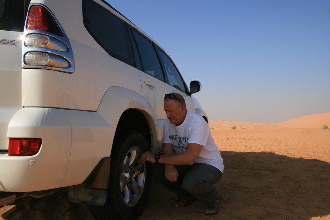 Our book described a track up a dune with a wonderful 360 degree panarama from the top. We think that we found the track but there was now a house at the top of it. We drove up anyway and while Sue took photos the owner turned up. I felt I had to explain why we were parked outside his house but he had as much English as I had Arabic. We exchanged my “Salam Alaikom” for his “How are you” and then reverted to lots of sign language. The outcome was an invite to come into the house site (a large walled enclosure) so that we could admire the views from the other side.