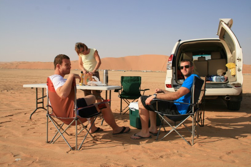 Once again we headed into Rub Al Khali or The Empty Quarter. After inspecting two of the restored forts in the Liwa oasis we went to Tel Moreeb, the UAE’s biggest sand dune and home to some of the craziest off-road challenges. You can see the dune in the background of the picture above. Extremely high powered 4wd’s attempt to head straight up the slope. We watched several make it while we were there and one do a wheelie across the slope.