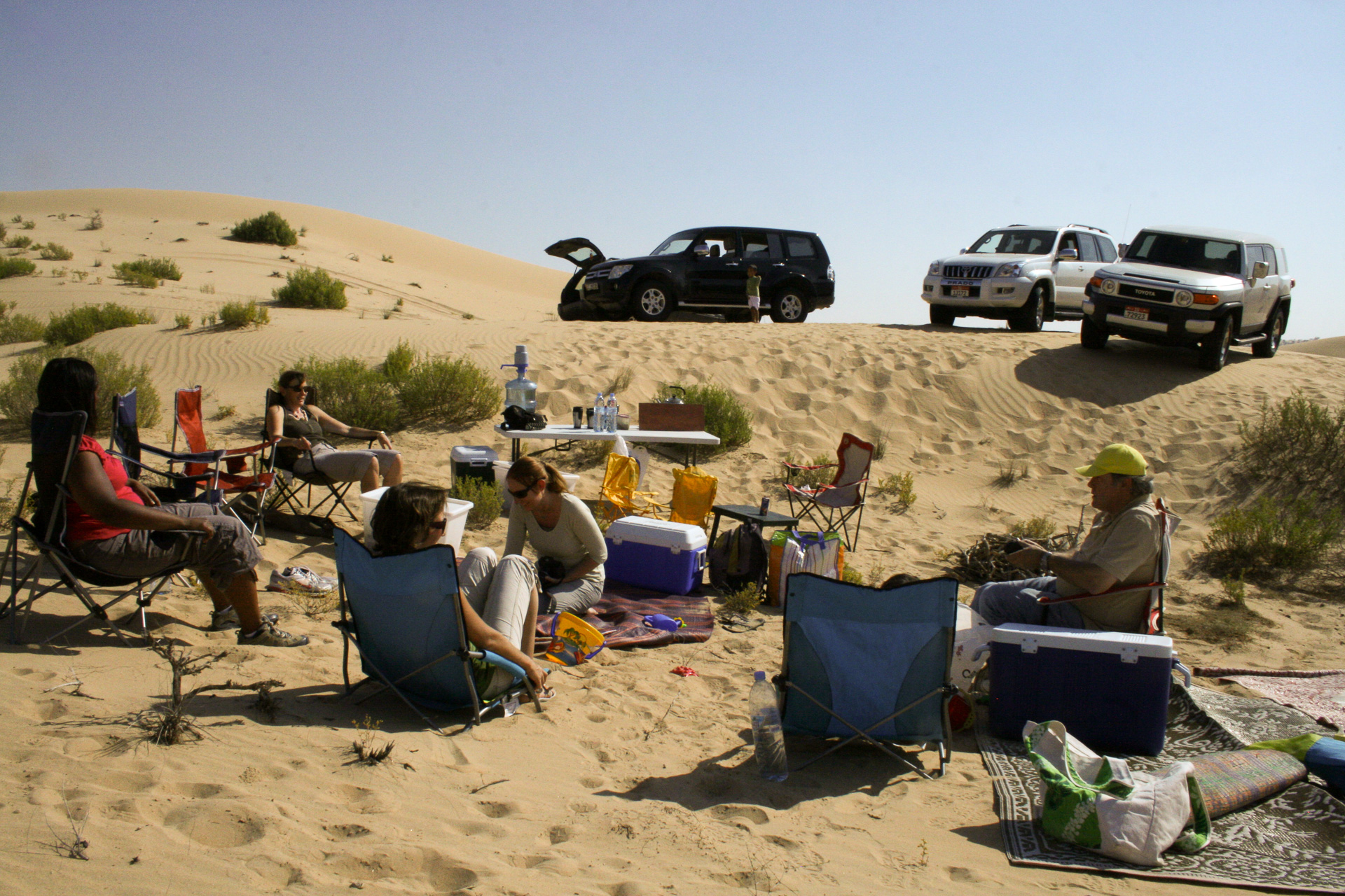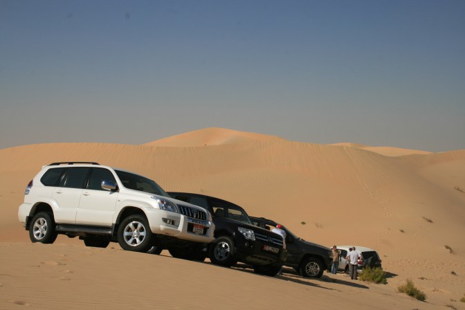 Just one hours drive from Abu Dhabi we headed into the desert for some serious dune bashing. Four 4×4’s with at least one driver who thought he knew what he was doing.