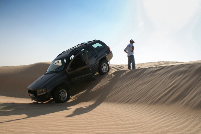 Everyone got stuck at least once. The first victim was Jean-Francois who was convinced that you did not need to let any air out of your tyres. So while the rest of us pounded up the side of a dune with 15psi in our tyres he slid into a hole and had to be pulled out. While this presented a photo opportunity for some of the spectators, others practiced dune driving with their own vehicles.