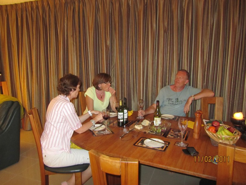 Obviously this was an excuse for lots of eating and drinking. Jonathan came prepared with several suitcases full of wine. Unfortunately the airport x-ray machines spotted it resulting in an hours delay, an official warning (complete with stamped certificate) and the confiscation of several bottles. Claire was quick to persuade them to confiscate the cheaper bottles and they still arrived with far more than the official allowance.