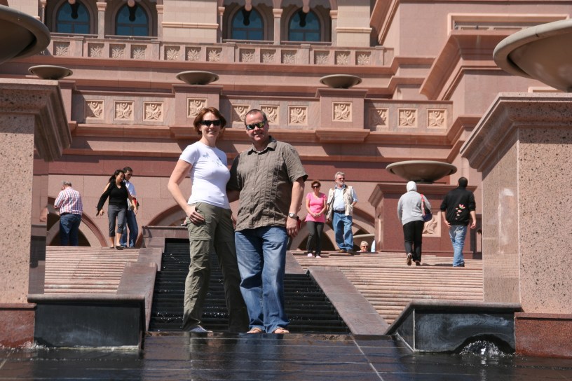 A cruisy day around town took us to the Heritage Village where the highlight for all visitors is the genuine half scale replica archeological site. At least its a pretty spot with nice shade trees and views across the water.Next stop the opulent Emirates Palace Hotel. USD 3 billion worth of gold-leaf, marble and over 1,000 Swarovski crystal chandeliers (whatever that means! I am just copying from a book).