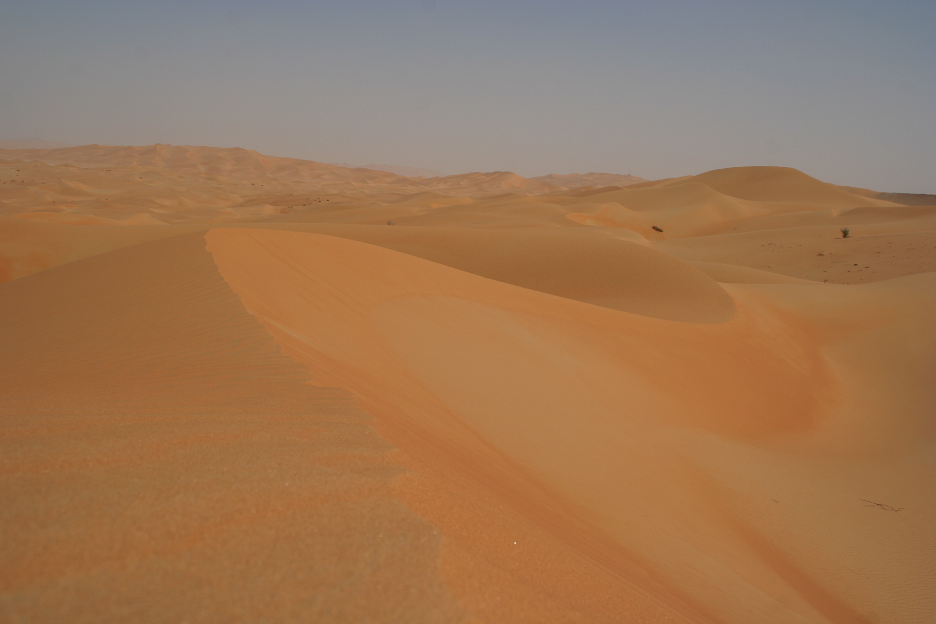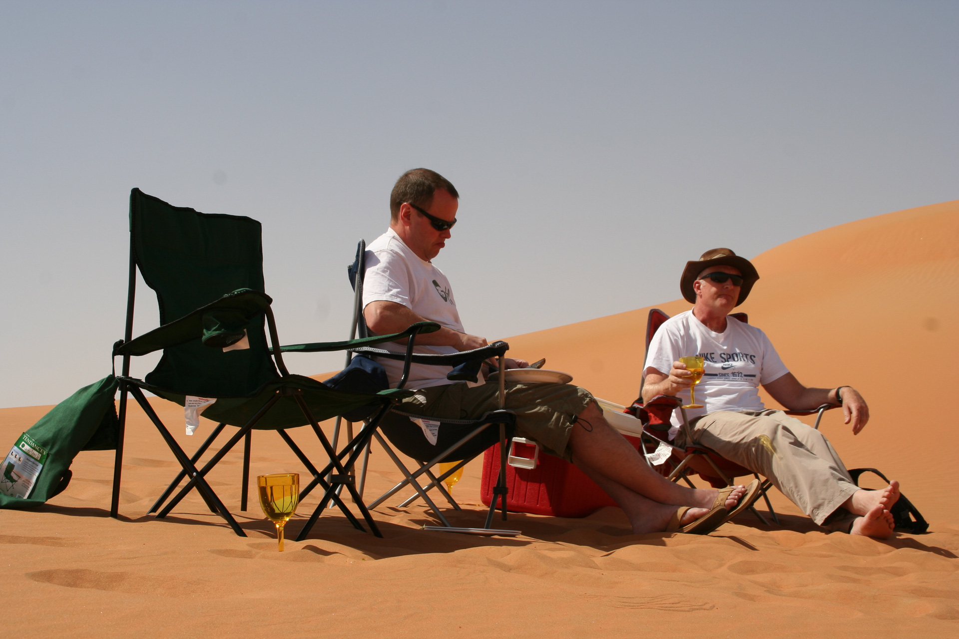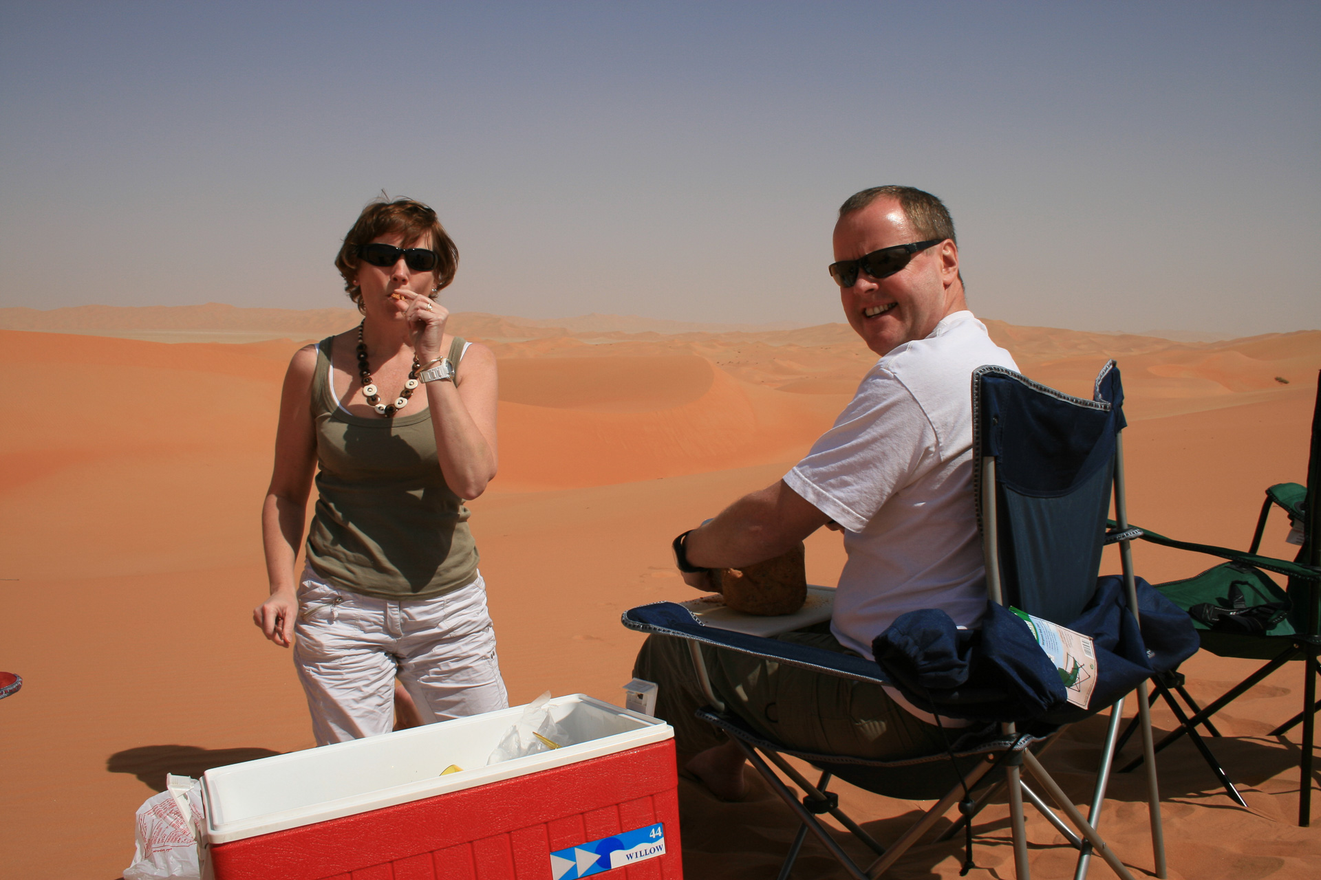 Eventually we called a halt, parked by the side of the road and carried deck chairs and chilly bin over a sand ridge to enjoy our lunch with spectacular views over the red dunes of Rub’ al Khali or The Empty Quarter.