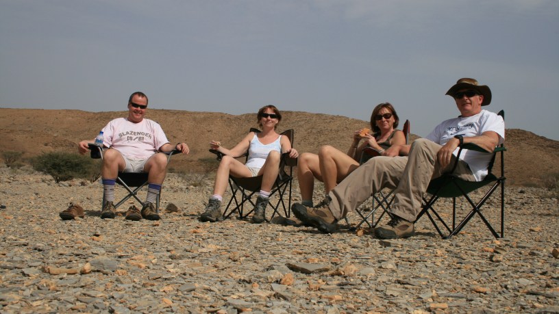 With the car fully loaded with food and camping gear and essential supplies disguised or hidden inside tents, we headed into Oman (no alcohol allowed). We have experienced a variety of border crossing but this was the best yet. At a deserted border post on a back road a smiling Omani guard asked “Do you have insurance?” I told him yes. Then “Do you have passports?” “Yes” and that was good enough he did not want to see any documents. Next question “Do you want some Snickers?” and we were offered his half eaten Snickers bar. He was laughing as much as we were and that was the border formalities completed.