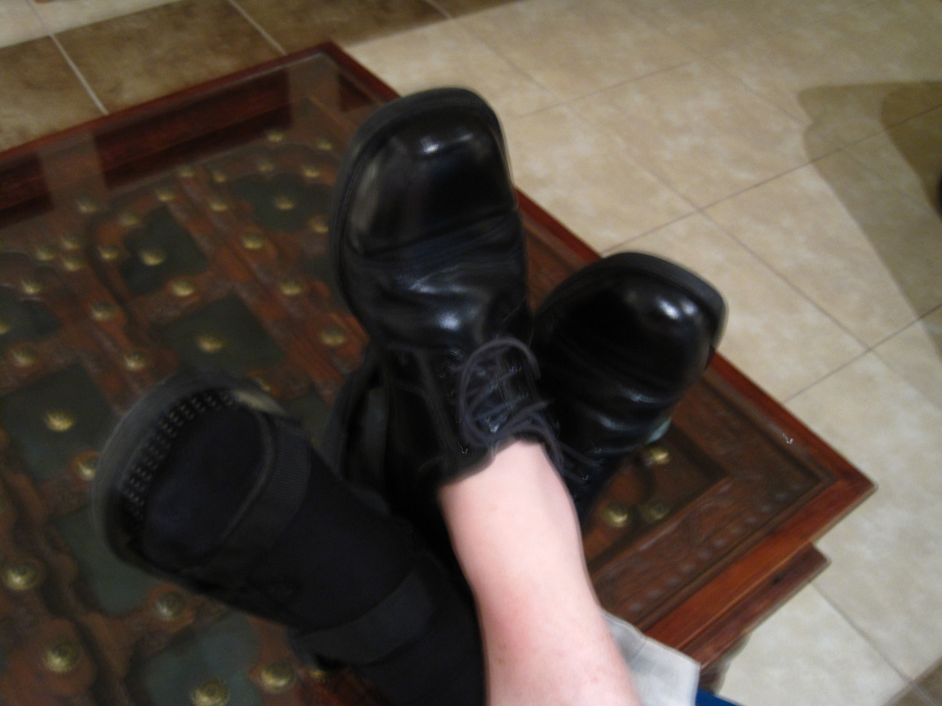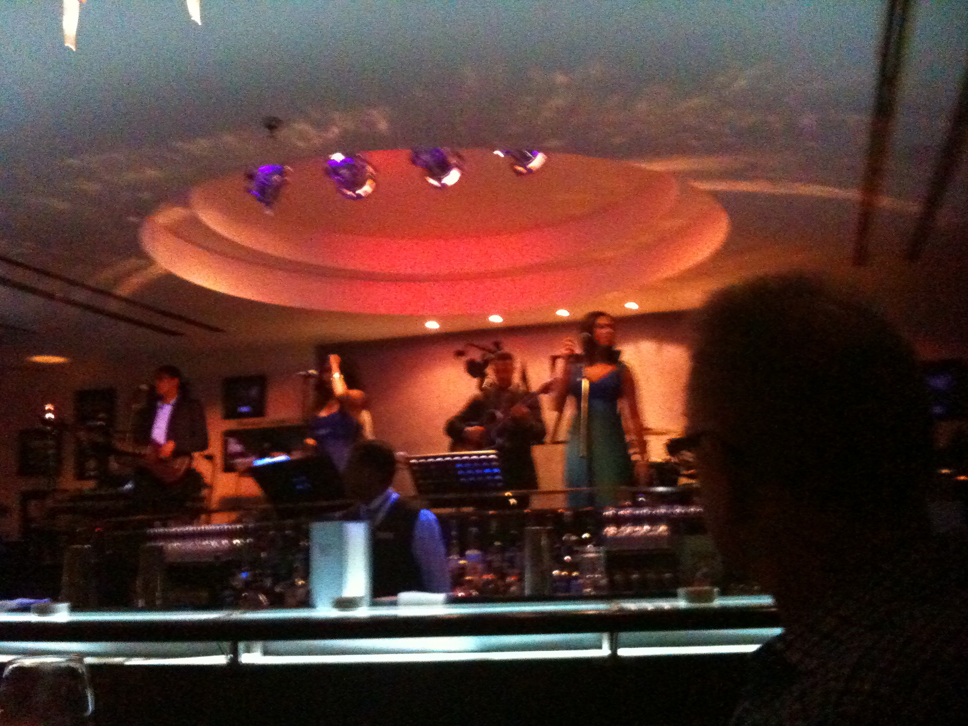 The Jazz Club’s dress code says men are not allowed to wear sandals and of course Pete was. The doorman said if he had some black socks on they he would be allowed in. So a quick swap saw Pete in socks and sandals and me with shoes and no socks.