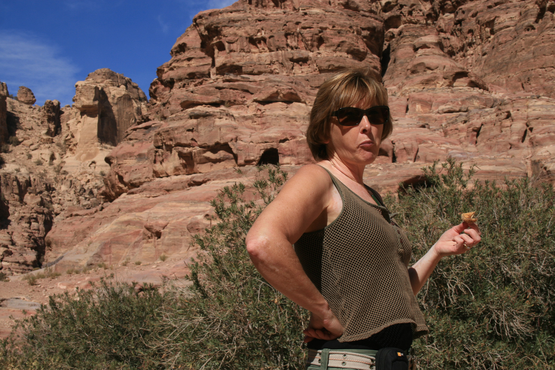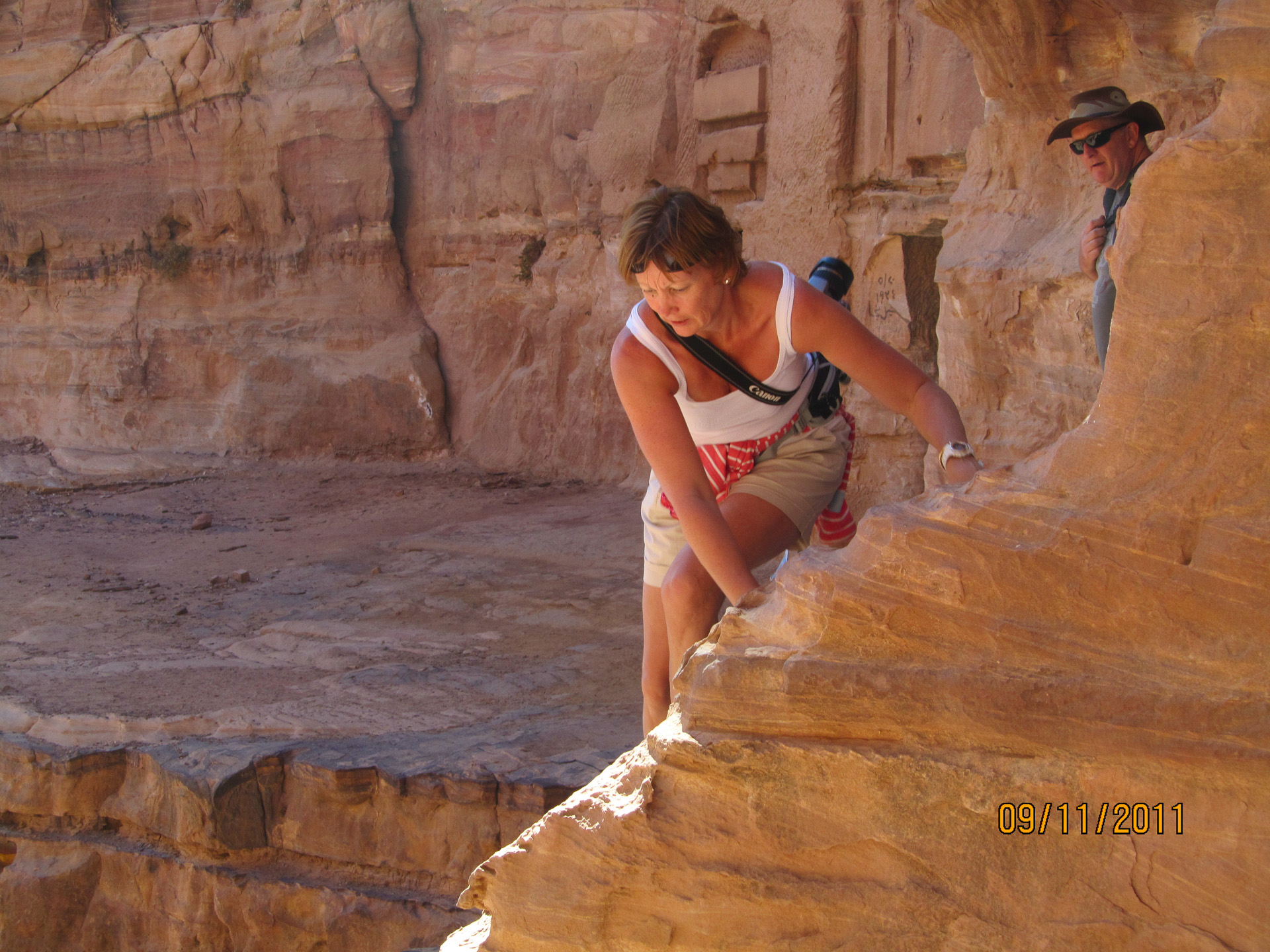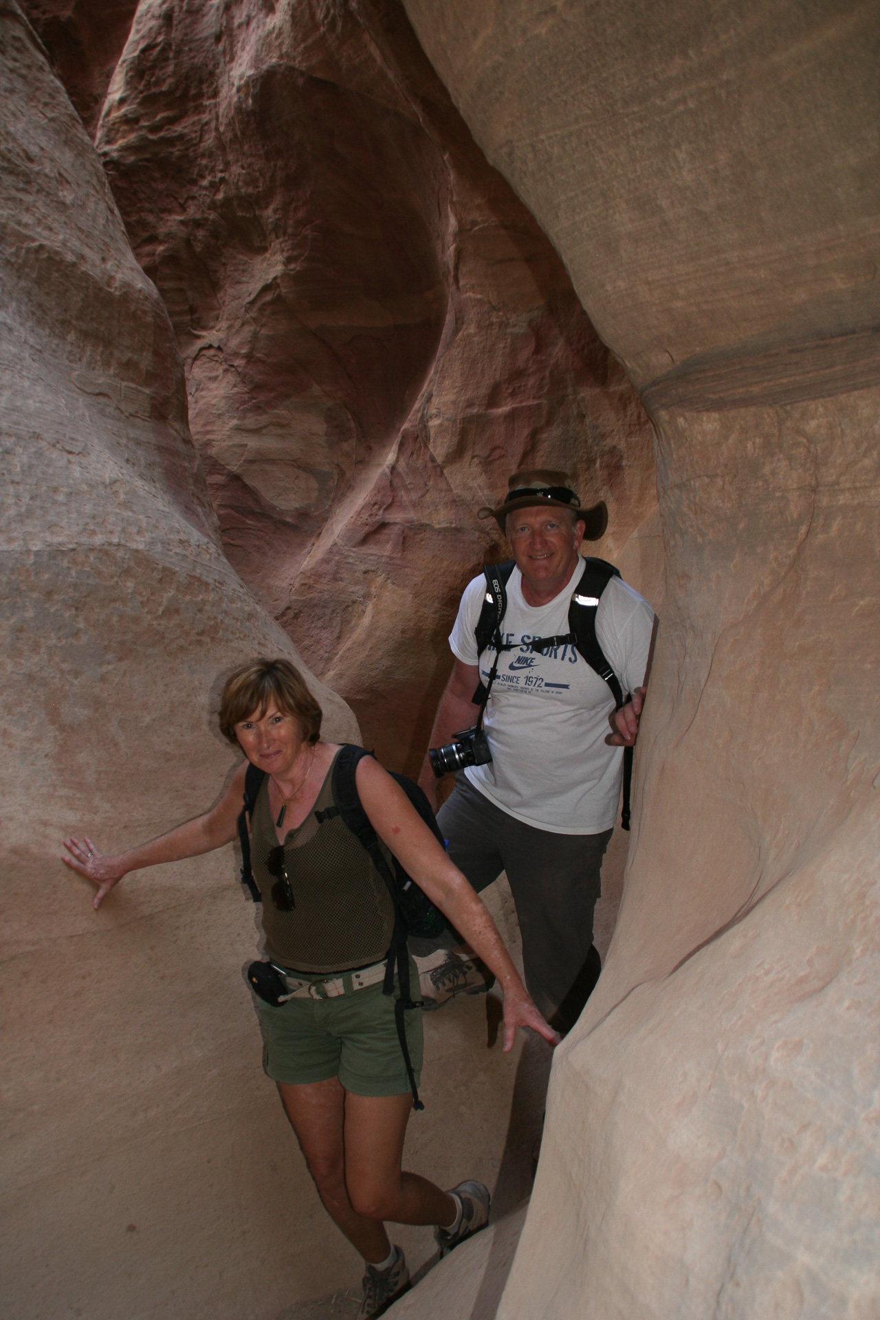 On the second day we had planned to enter through an alternative route shown on the guide maps. As we set off the tourist police called us back and said that it was too dangerous to go without a guide. Not to be deterred we simply opted to come home that way. This turned out to be the highlight of our two days. A Bedouin lady on a donkey led us to the entrance of the return route and a man who had followed insisted on coming with us as our guide. The narrow wadi eventually led us back to the start of the Siq, the usual entrance to Petra.