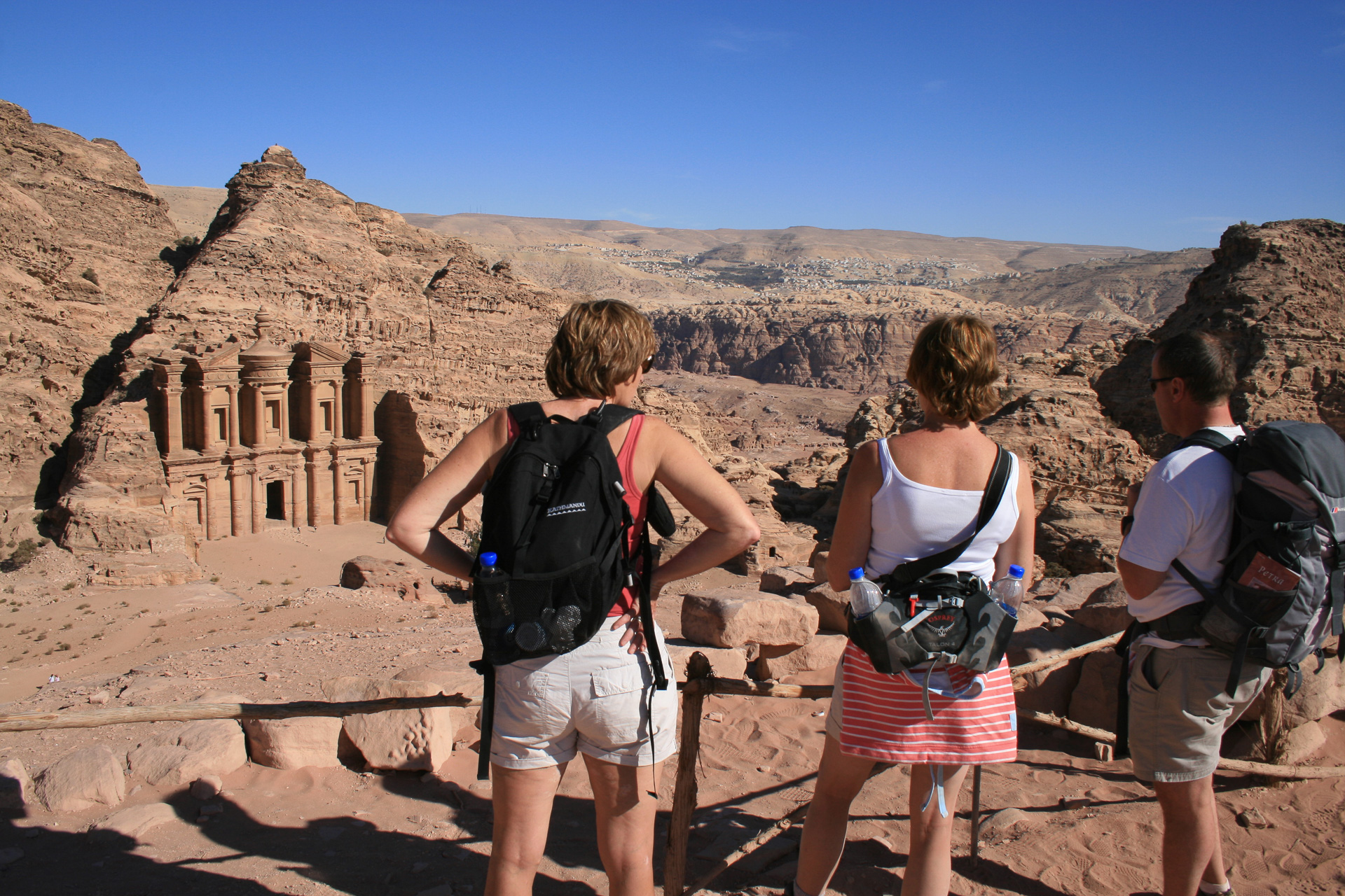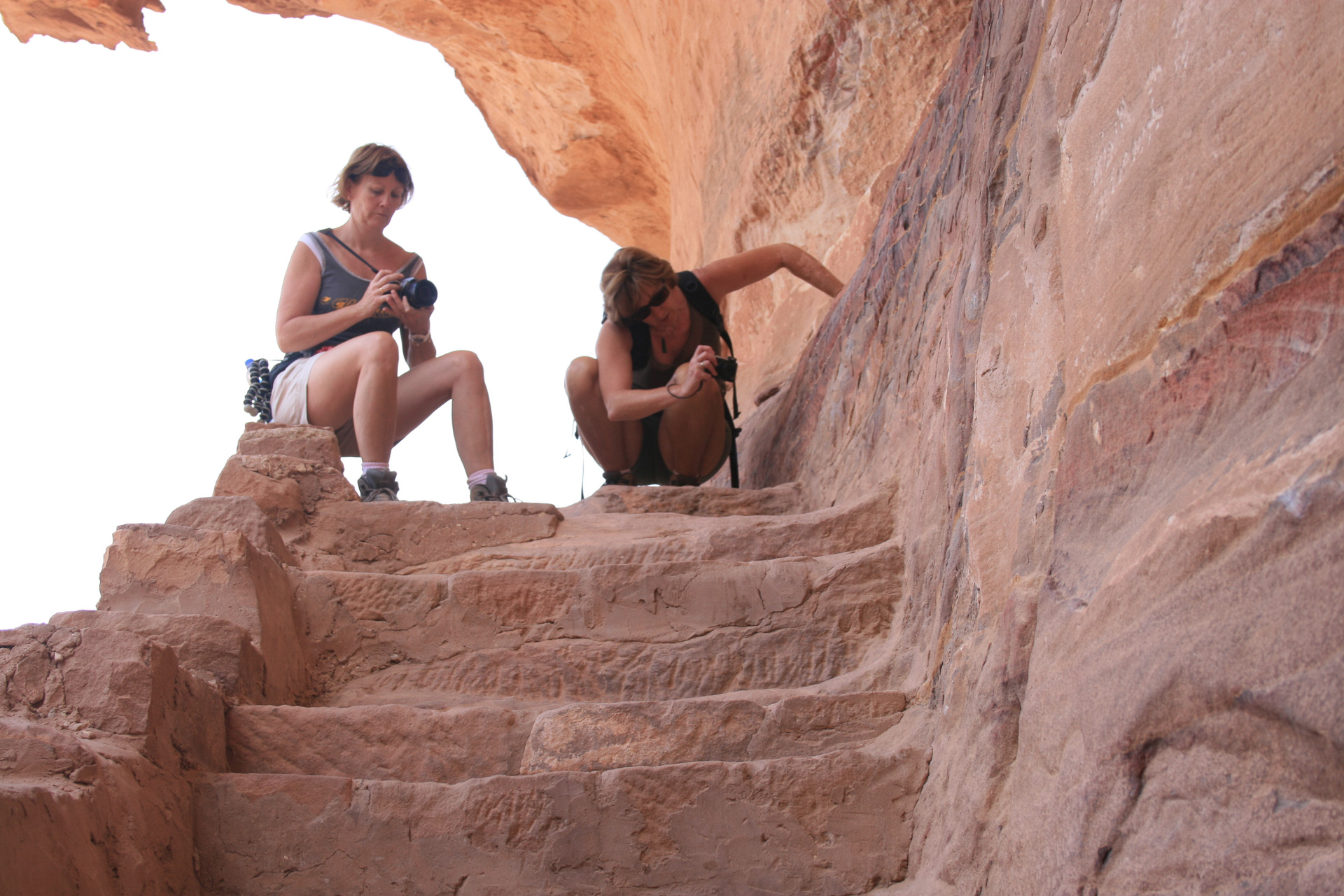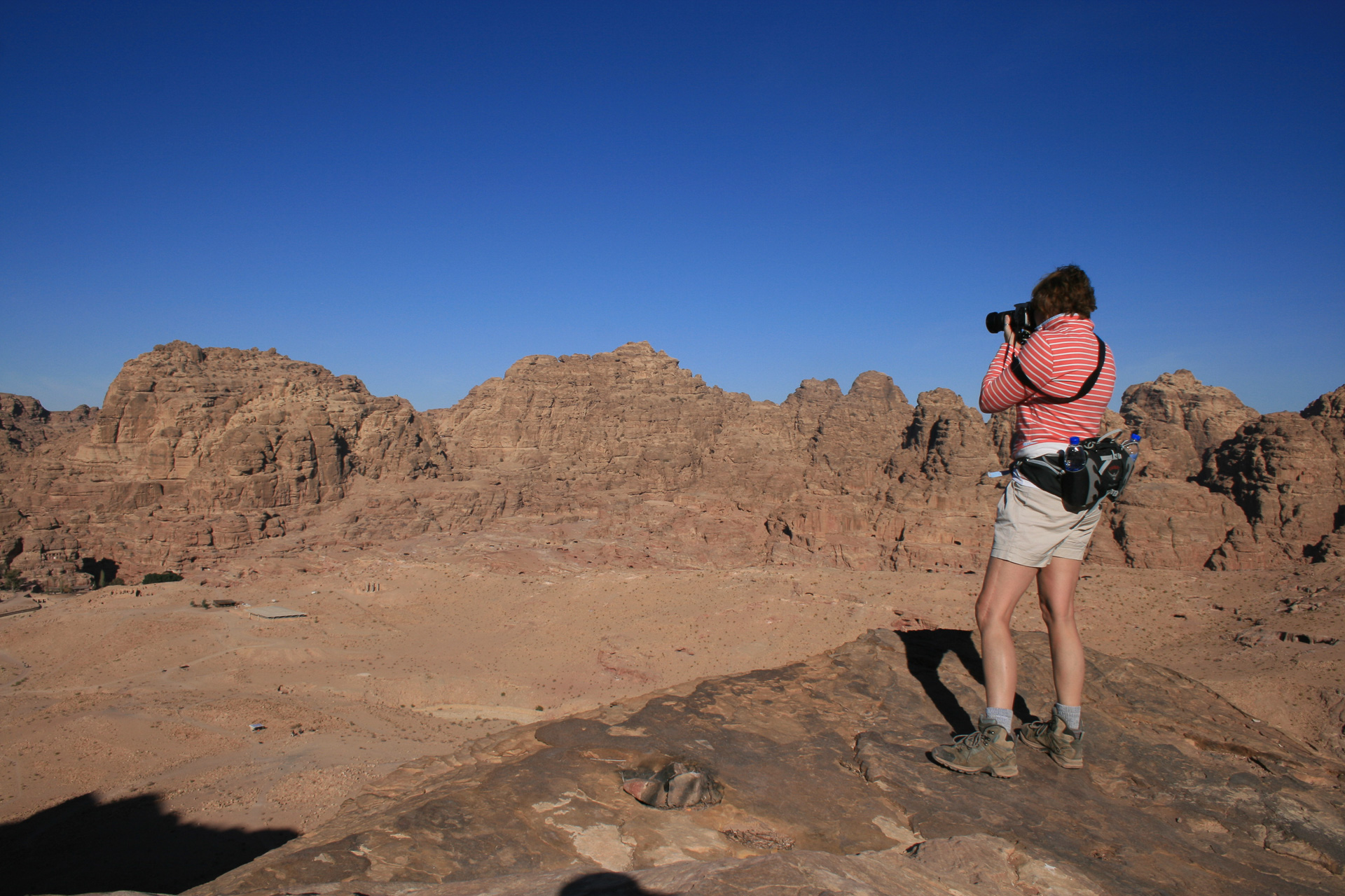 On the second day we had planned to enter through an alternative route shown on the guide maps. As we set off the tourist police called us back and said that it was too dangerous to go without a guide. Not to be deterred we simply opted to come home that way. This turned out to be the highlight of our two days. A Bedouin lady on a donkey led us to the entrance of the return route and a man who had followed insisted on coming with us as our guide. The narrow wadi eventually led us back to the start of the Siq, the usual entrance to Petra.