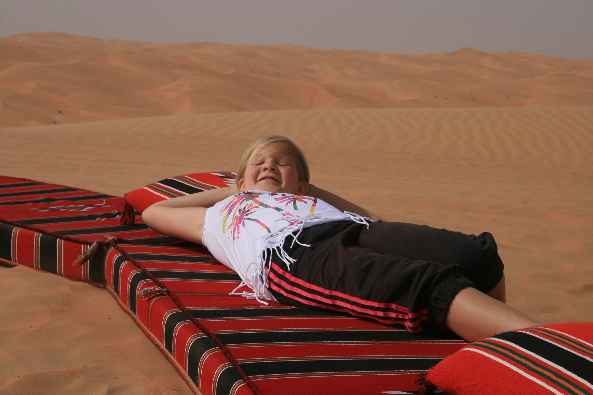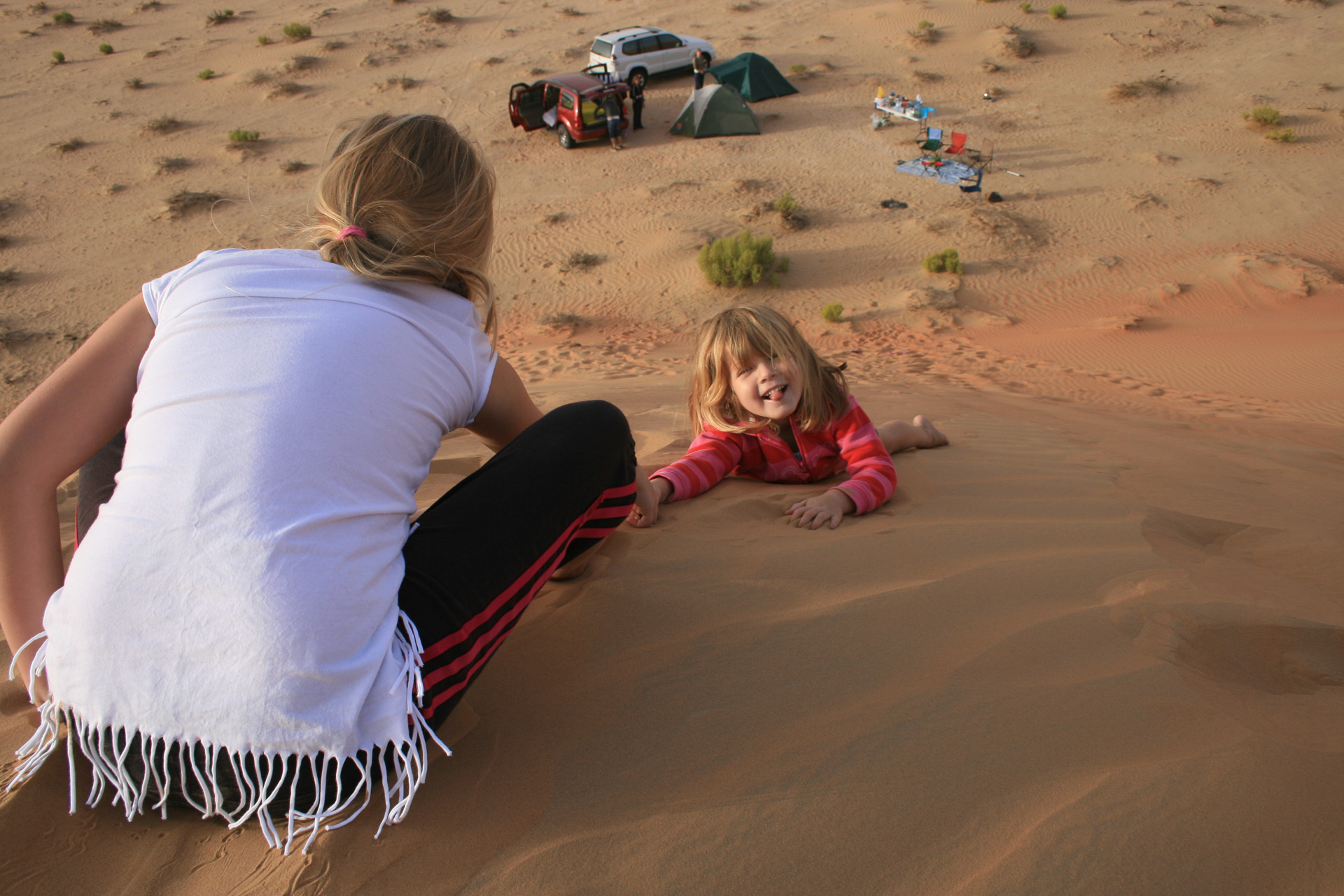 Jenny and Jeremy Robinson are a Kiwi couple with two daughters Mia and Imogen. They have lived in Abu Dhabi for over four years but had never camped in the desert. Obviously this had to be rectified. So we headed for our favourite camp/picnic site near Qasr al Sarab.