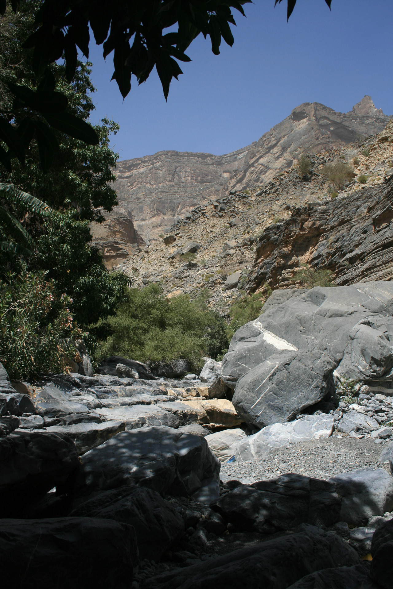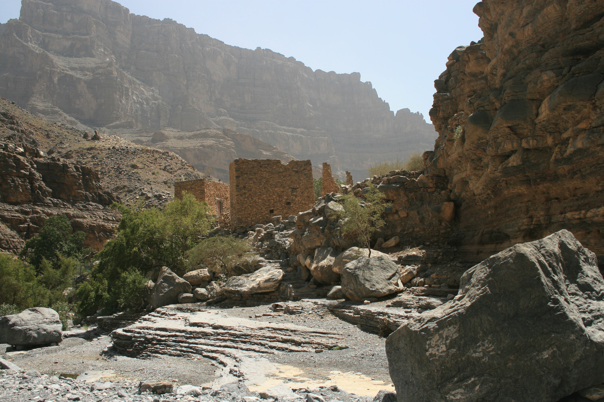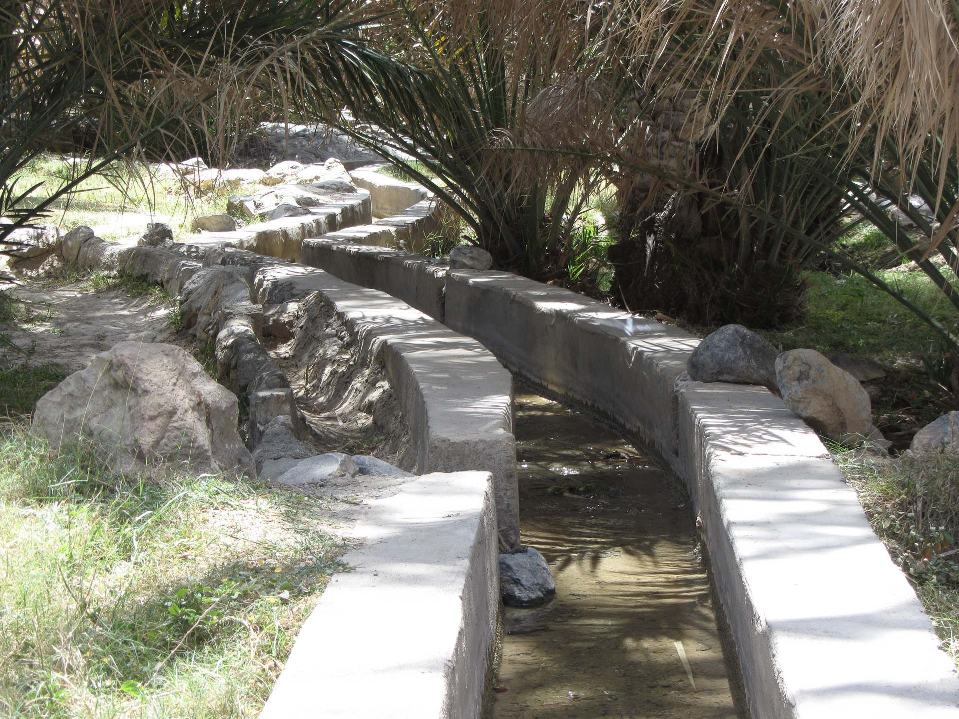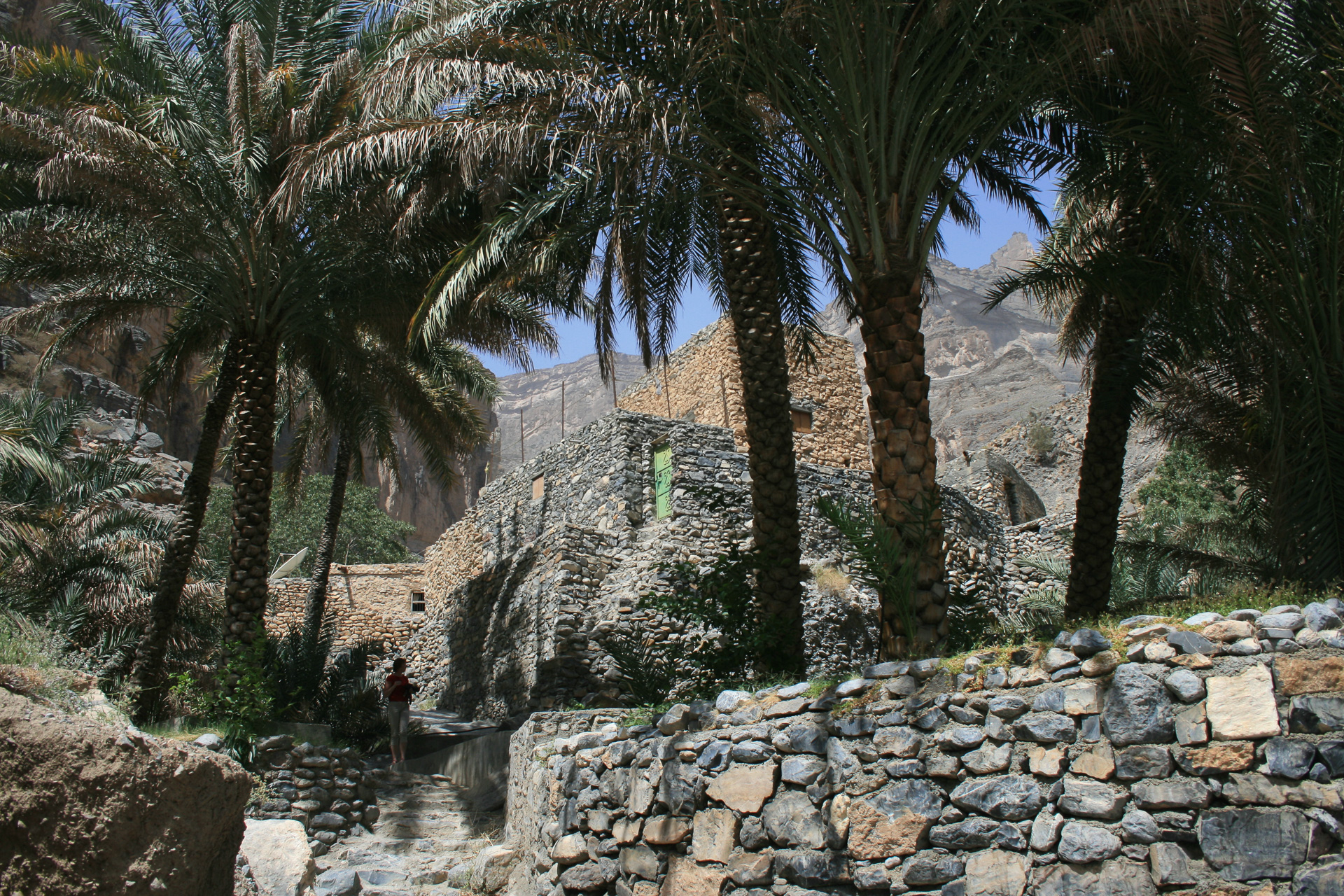 Lots of date palms irrigated from falaj, the irrigation channels that run along the sides of the wadi.