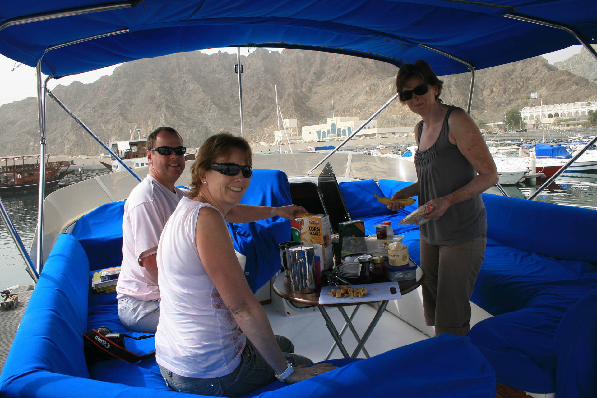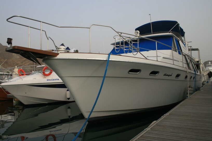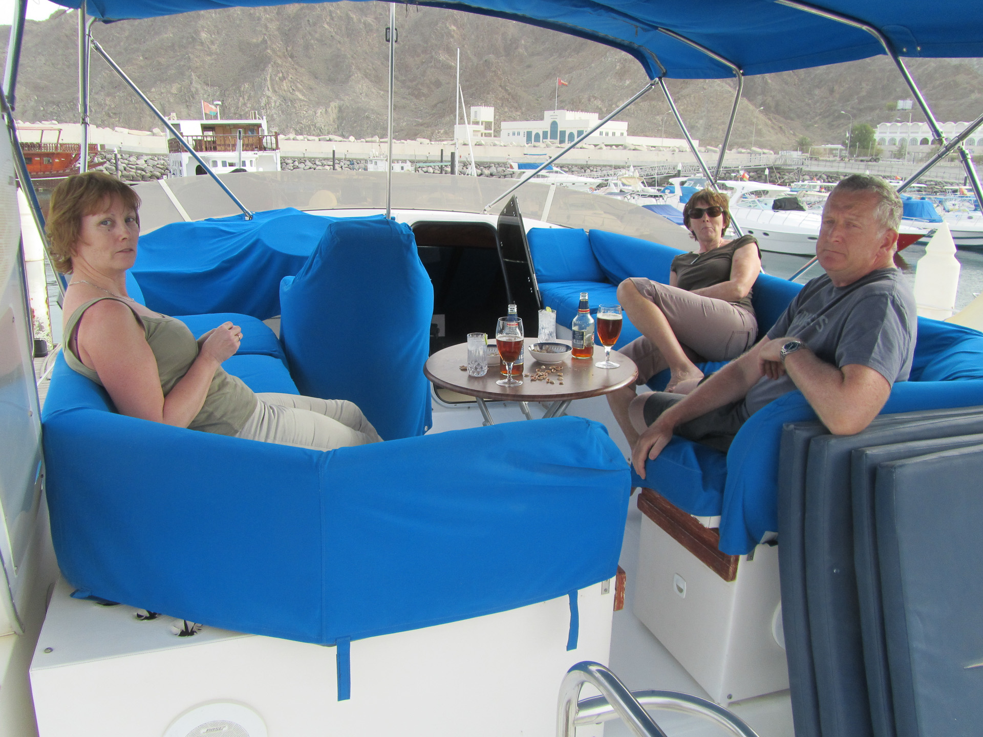 We had planned three nights in nice looking bed and breakfast. When we emailed to confirm the booking the owner was most apologetic but told us that she had taken another booking and no longer had room for us. Would we mind staying on their launch in Bandar al Rowdar Marina. A total no brainer for us. Yes please.