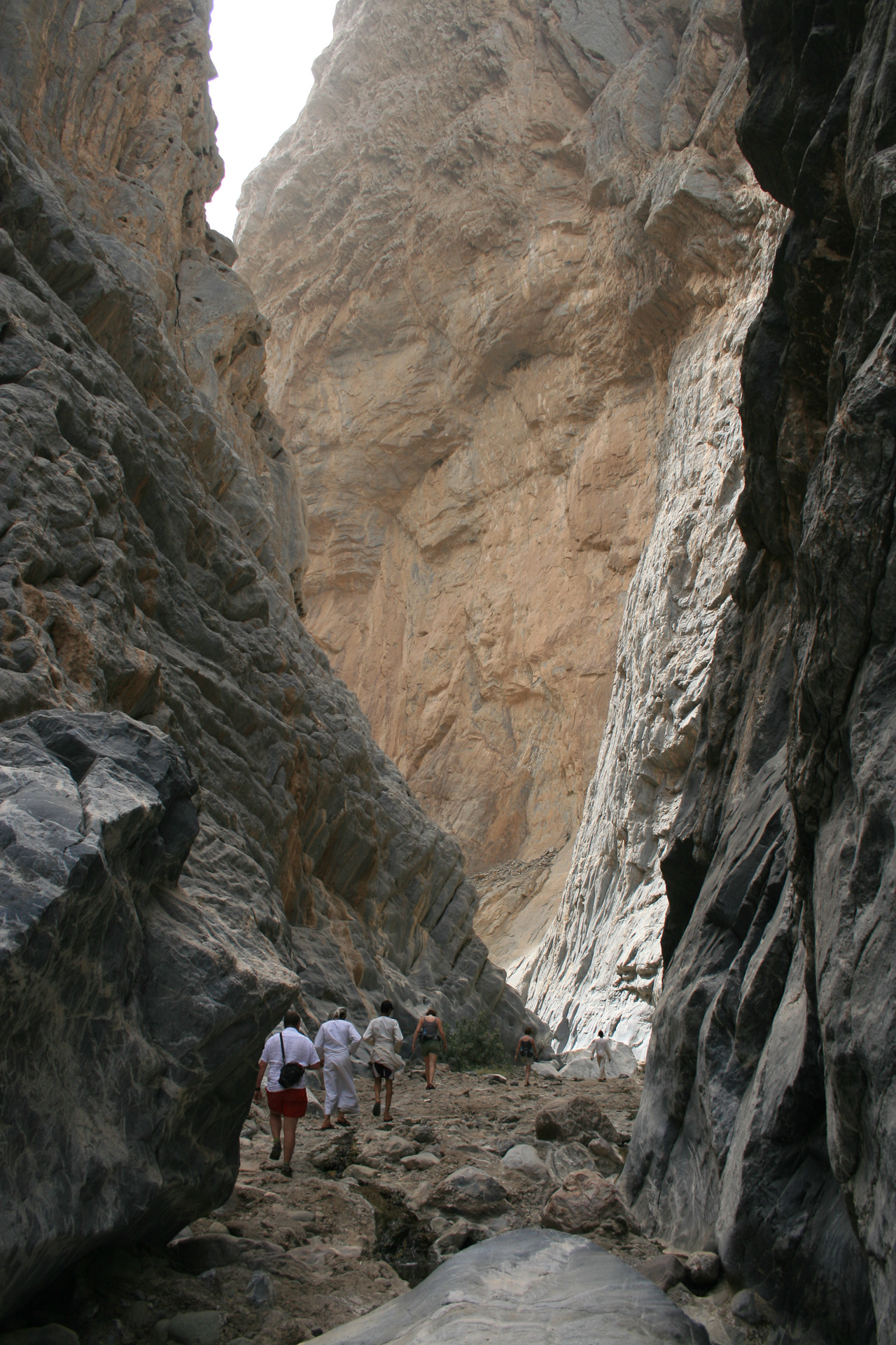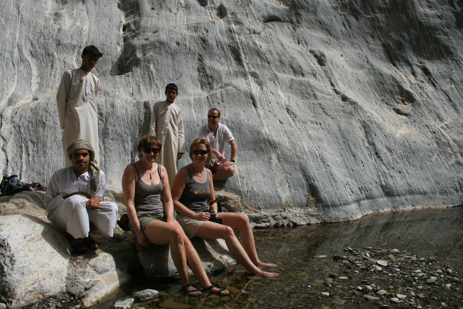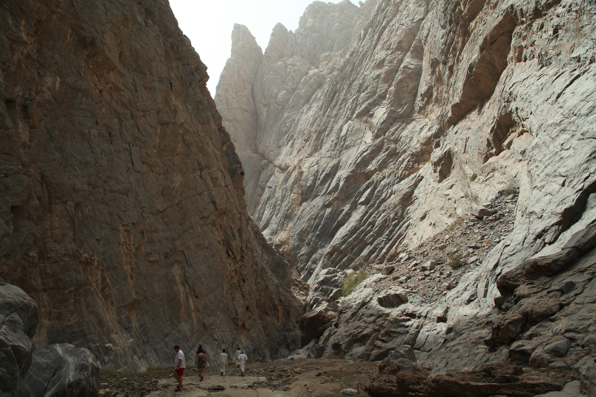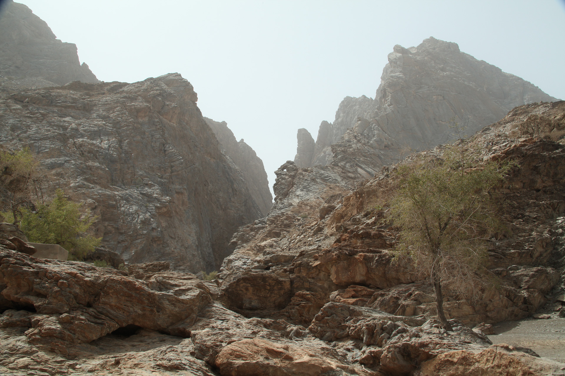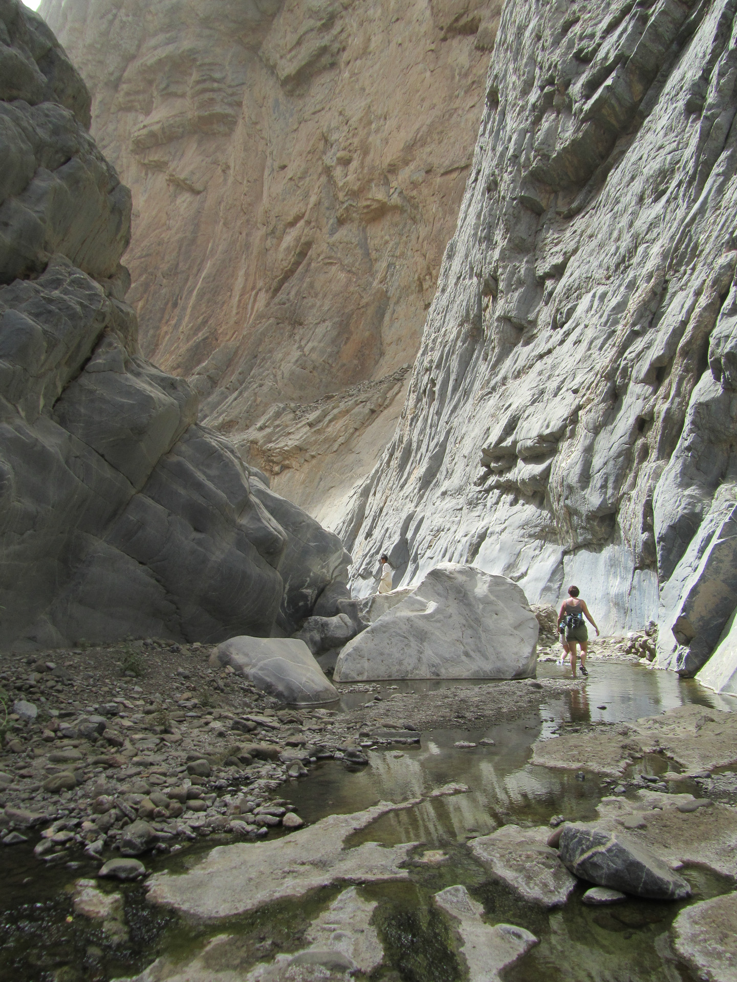 We drove back to the border crossing at Al Ain via the coast road and Sohar but made a major detour inland to do a wadi walk called ‘The Chains’ because of a helpful set of chains and stirrups left by the British army in the 1920 and used to clamber up a particularly steep section of the ‘walk’