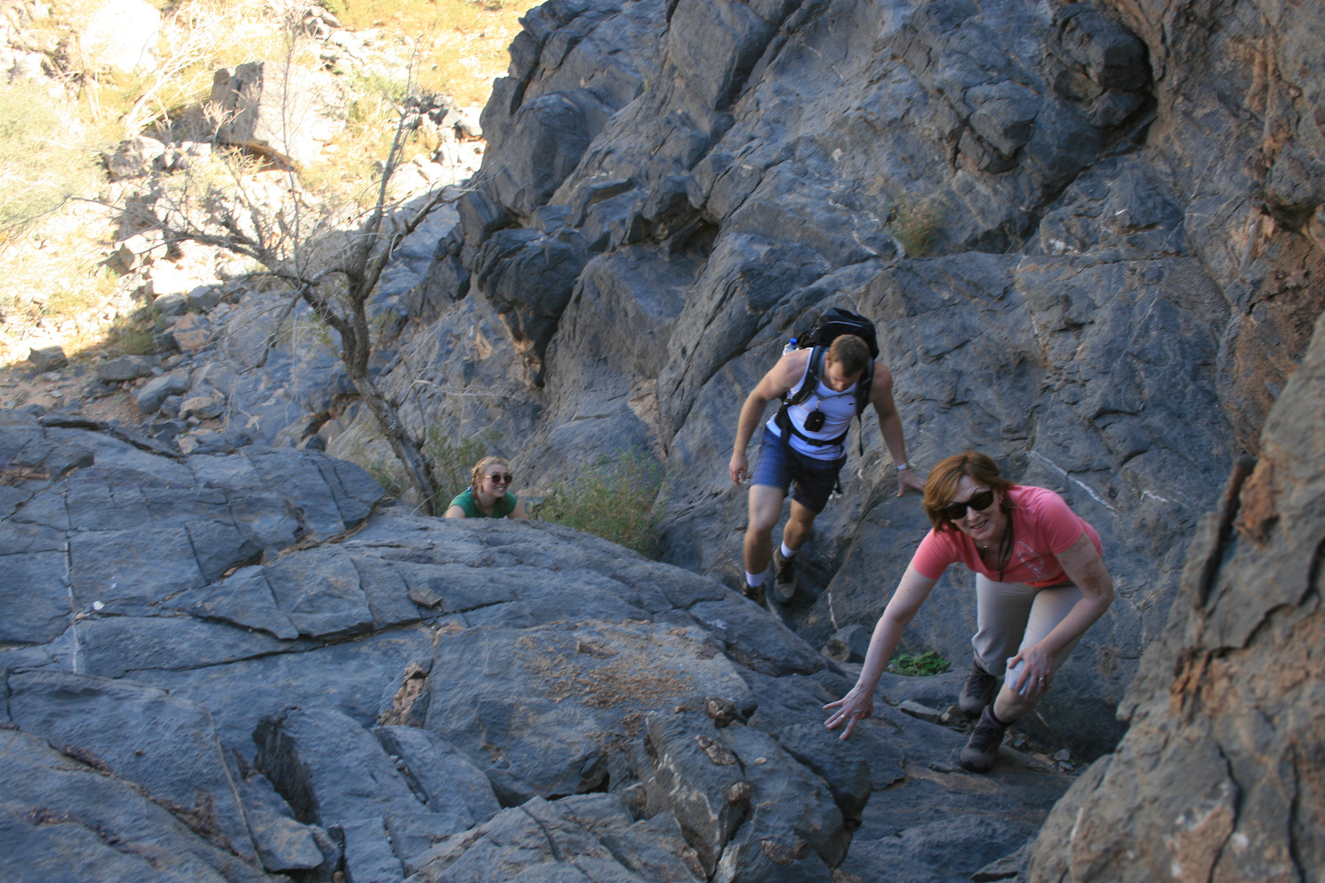 Apparently ‘damm’ roughly translates to ‘hidden’ and after yesterday’s efforts it seemed to be justified. However, Nigel’s early morning photoshoot revealed another entrance to the wadi past walled cave dwellings and down into the most beautiful swimming holes we have seen.