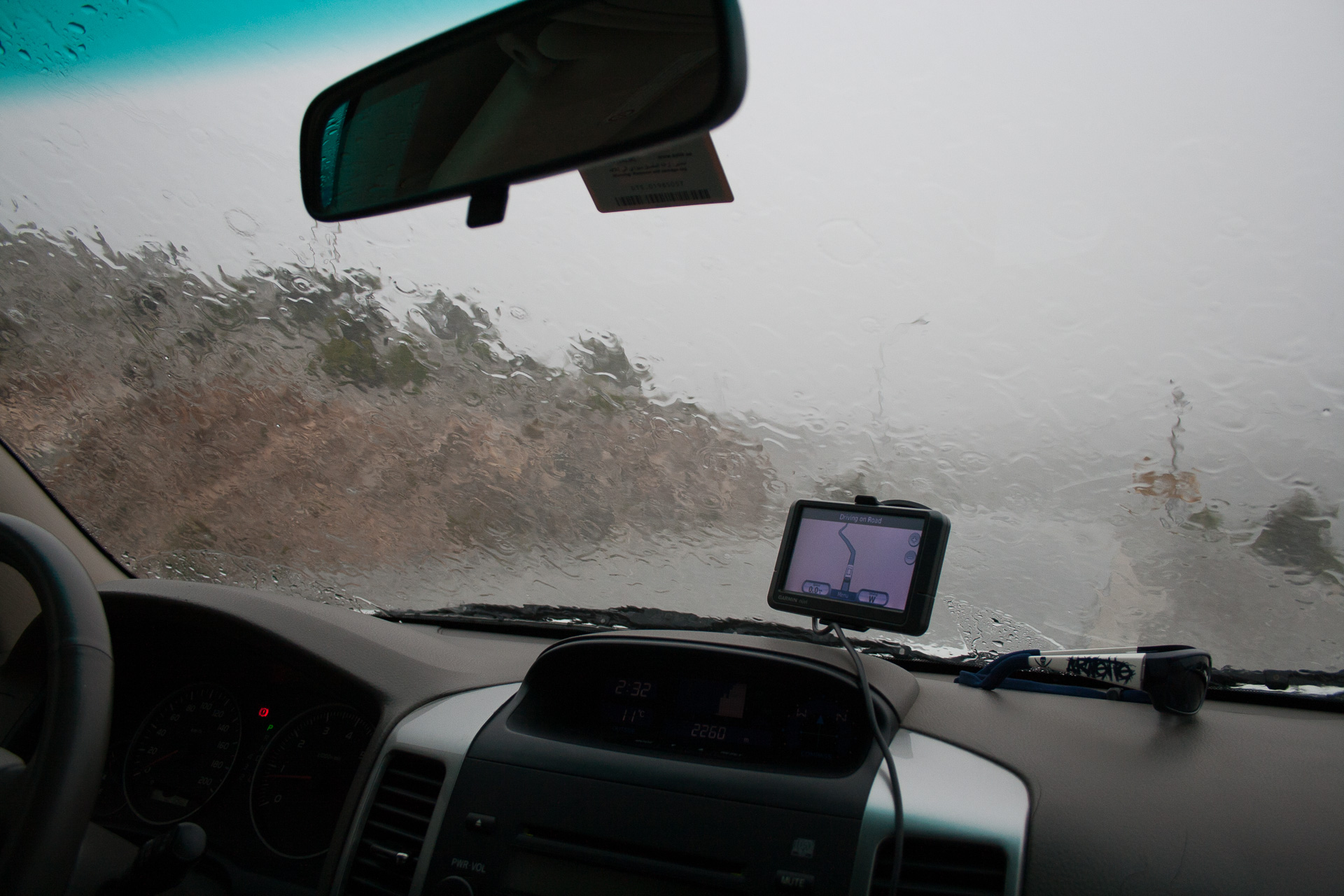 We had wanted to explore the ruined buildings but had driven through a shallow ford and several wadis that had obviously been flooded yesterday. With thunder rolling through the hills around us we decided it was time to leave and headed down the mountain in yet more pelting rain.