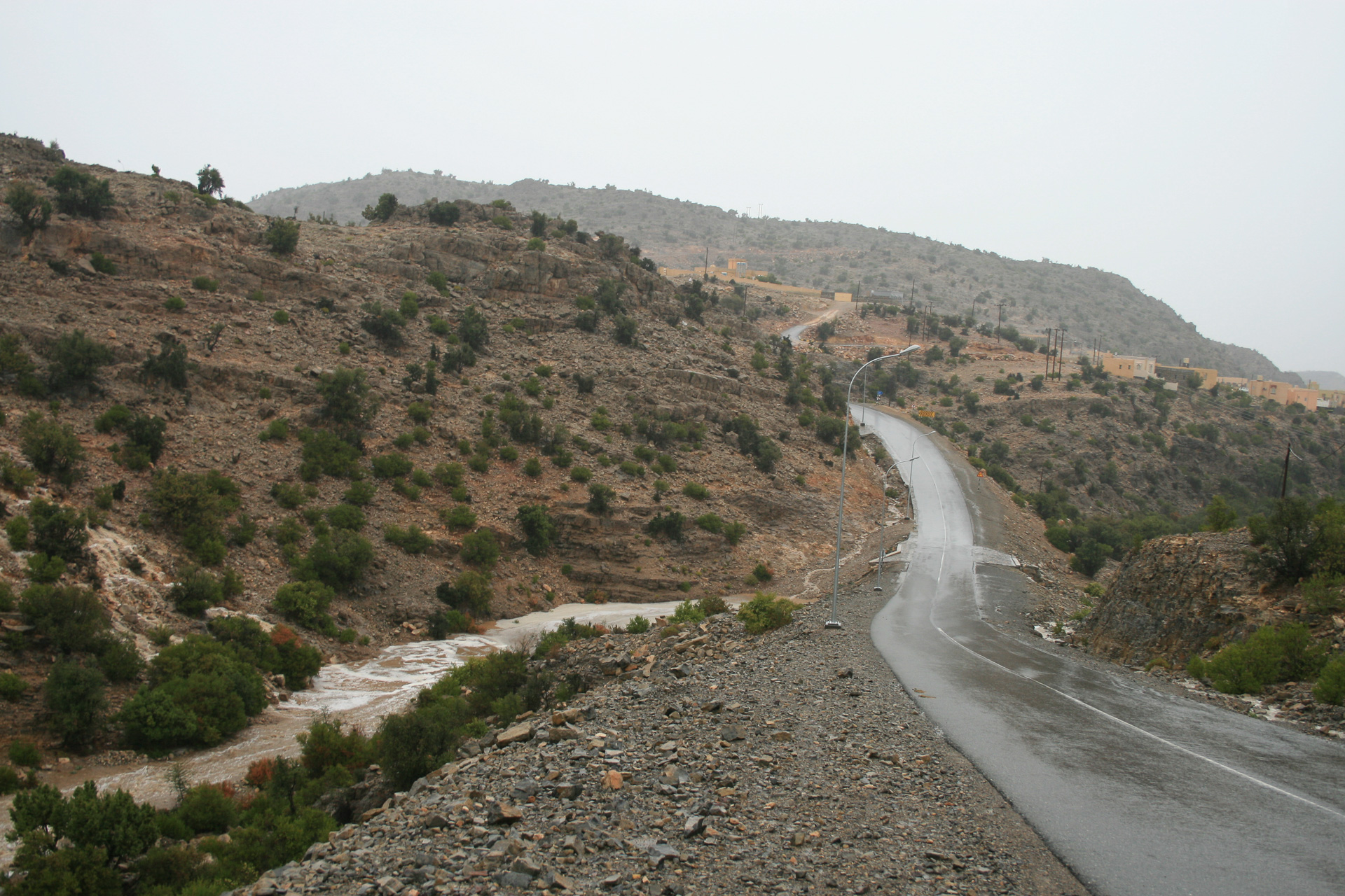 We drove higher still, intending to explore a remote village, when the rain found us. In a spectacular thunder and lightening storm we opted not to continue down an increasingly precipitous track and instead drove back onto the tar seal to watch the water cascade down the bare mountain slopes and begin to fill the wadis below. The temperature dropped to 10 degrees as we sat in the car.