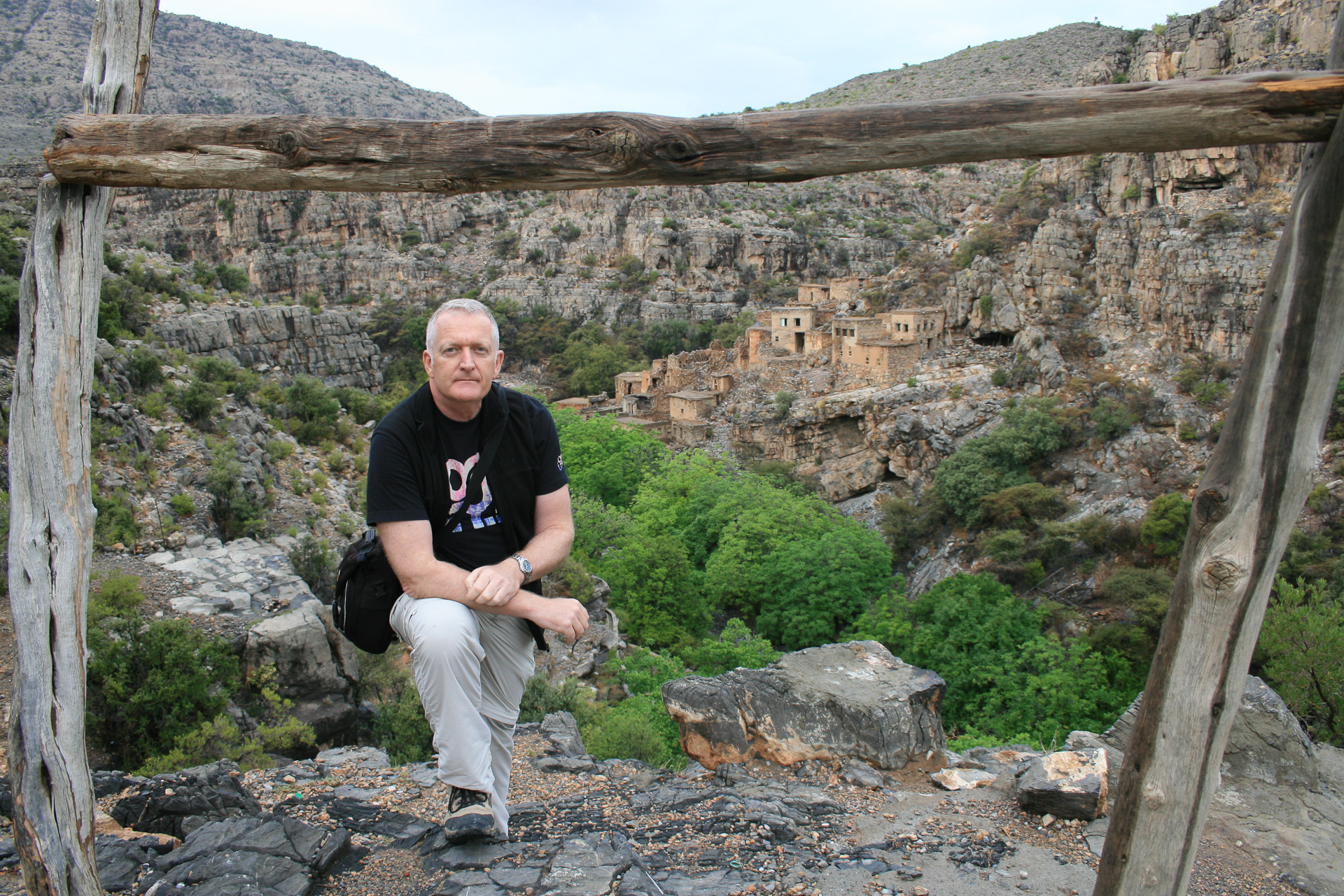 We had read that it was possible to camp and trek on Jebel Ahkdar in Oman throughout the summer. The plateau is over 2000m and can be 20 degrees cooler than the surrounding lowlands. Since Sue’s broken ribs are still causing trouble, we booked into the Sahar Hotel where we had stayed in December and planned a reconnaissance mission to find suitable camp sites for future visits. This turned out to be a really good move.