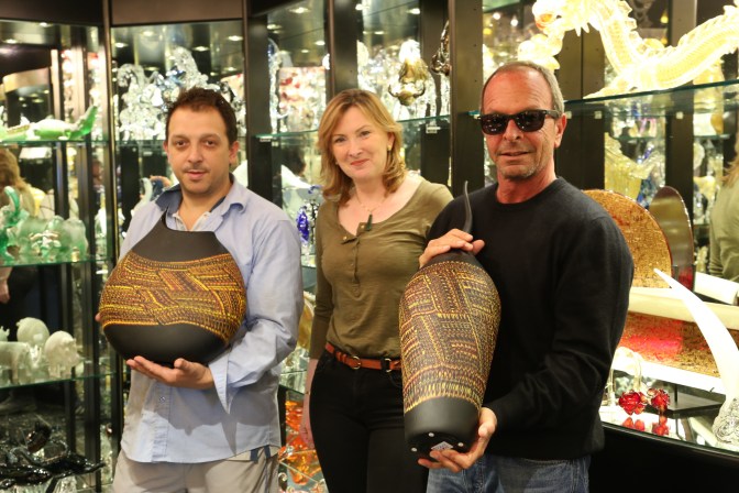 The obligatory trip to Murano and a glass factory took place on Sue’s birthday, so we are now art collectors. The vases looked so much better together we ‘had’ to buy them both.