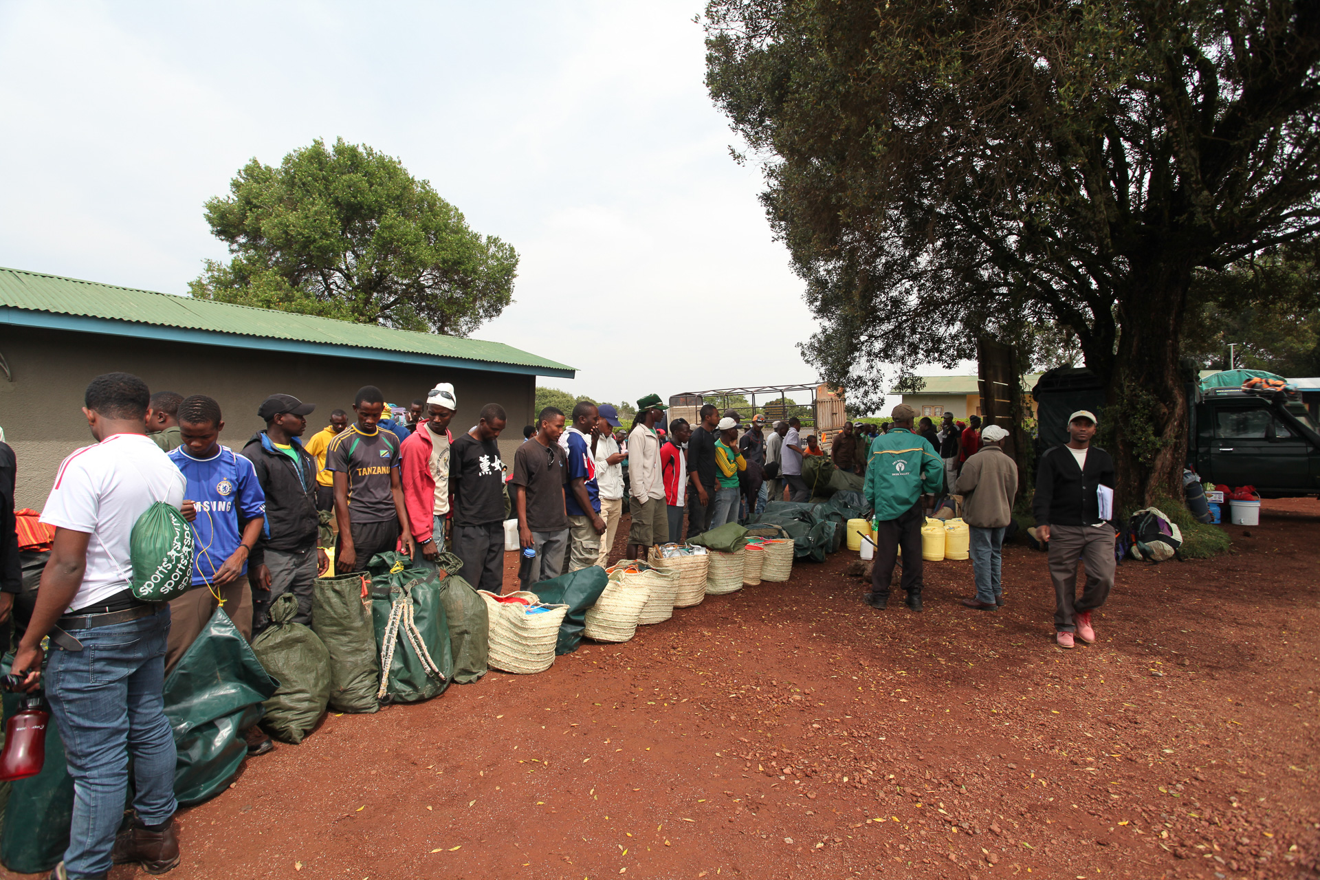 From the lodge we travelled to the Londorossi National Park Gate, on the western side of Kilimanjaro, for registration. Then from the apparent chaos that was the organisation of porters and their loads we continued to the Lemosho Roadhead, the starting point for our eight-day climb.