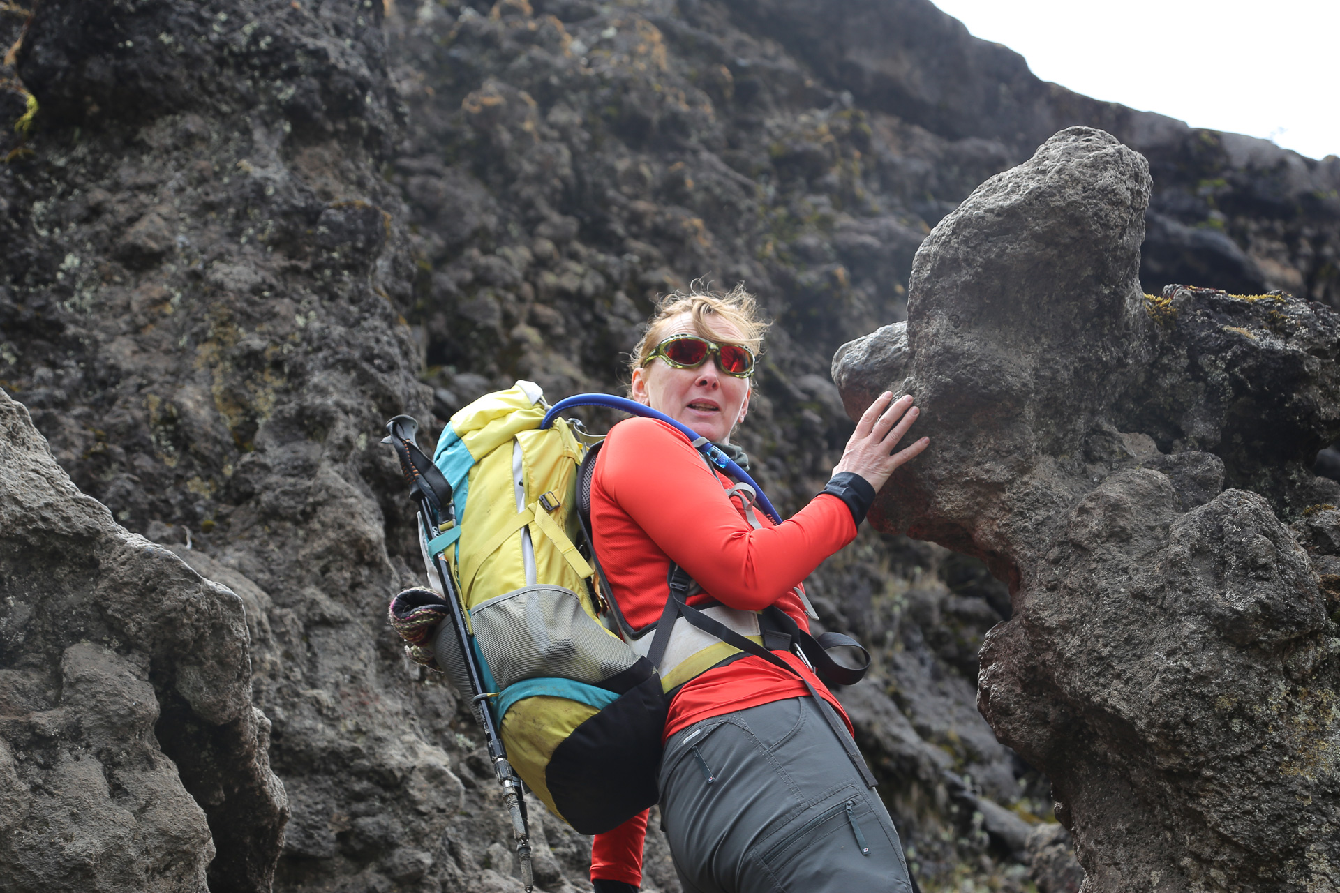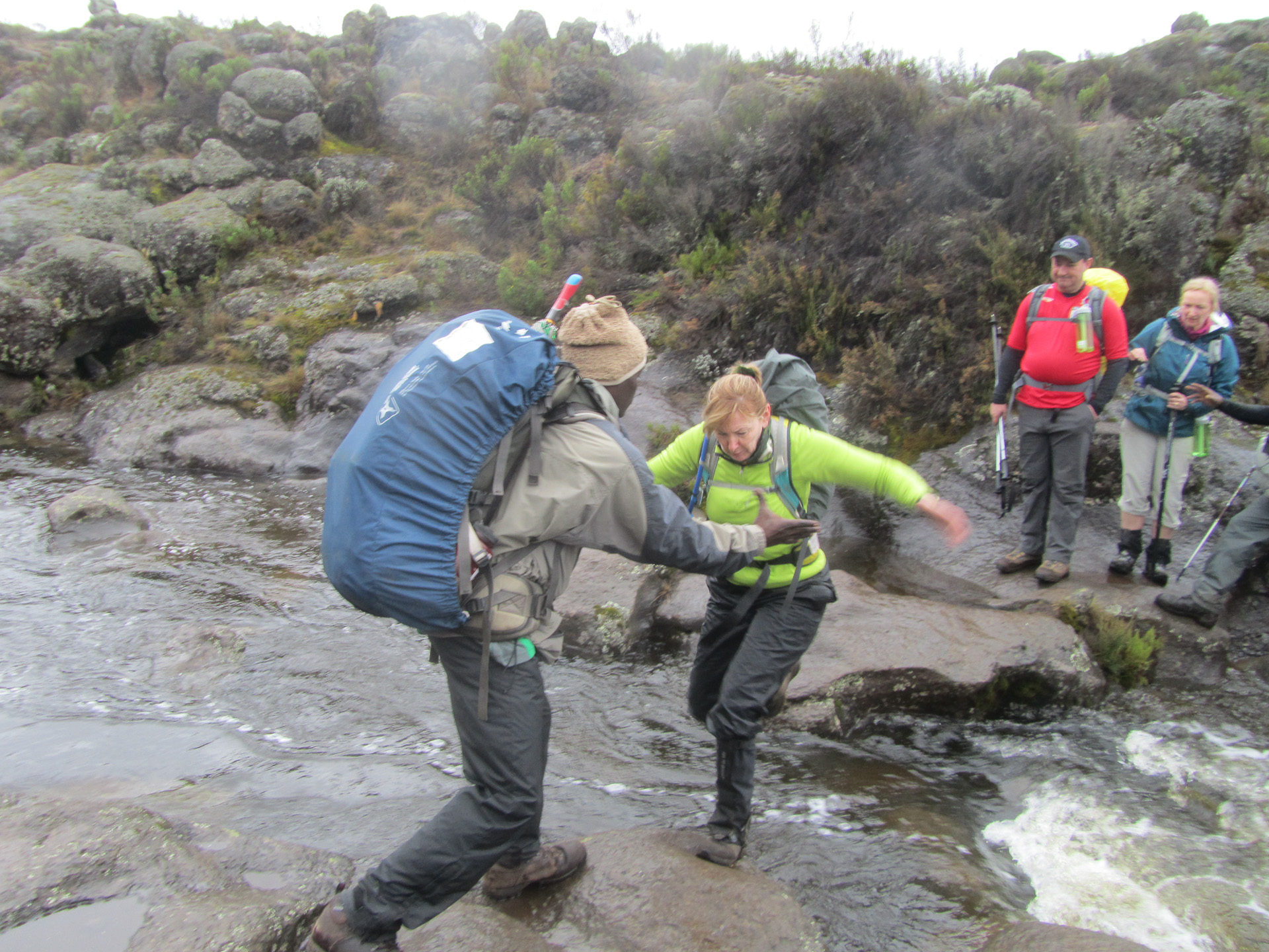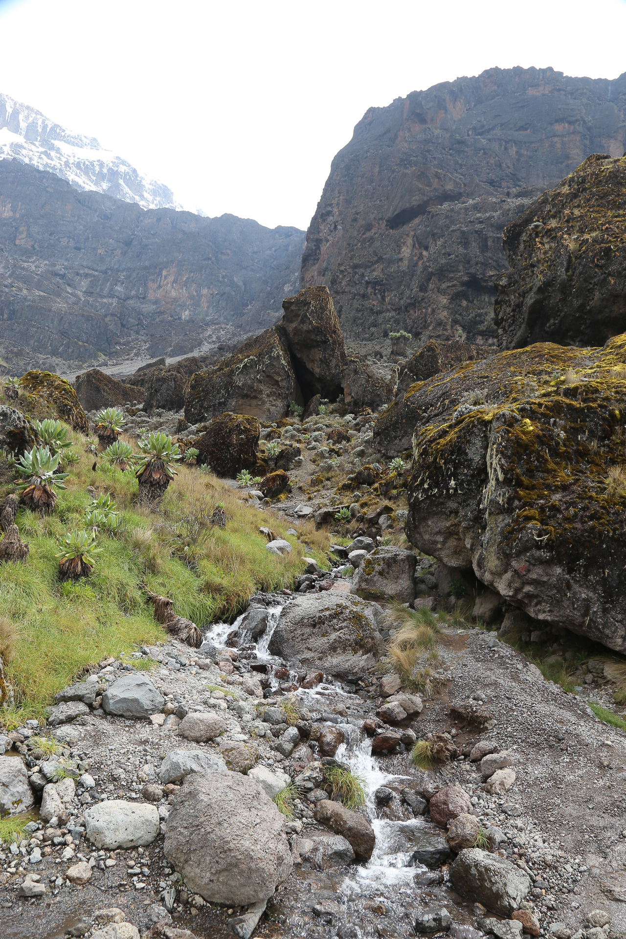 After a short lunch break at the top of Barranco Wall we headed down again past stunning lava features to the mountain streams below. Naturally, that meant another climb to reach Karanga Hut Camp at the top of the other side of the valley.