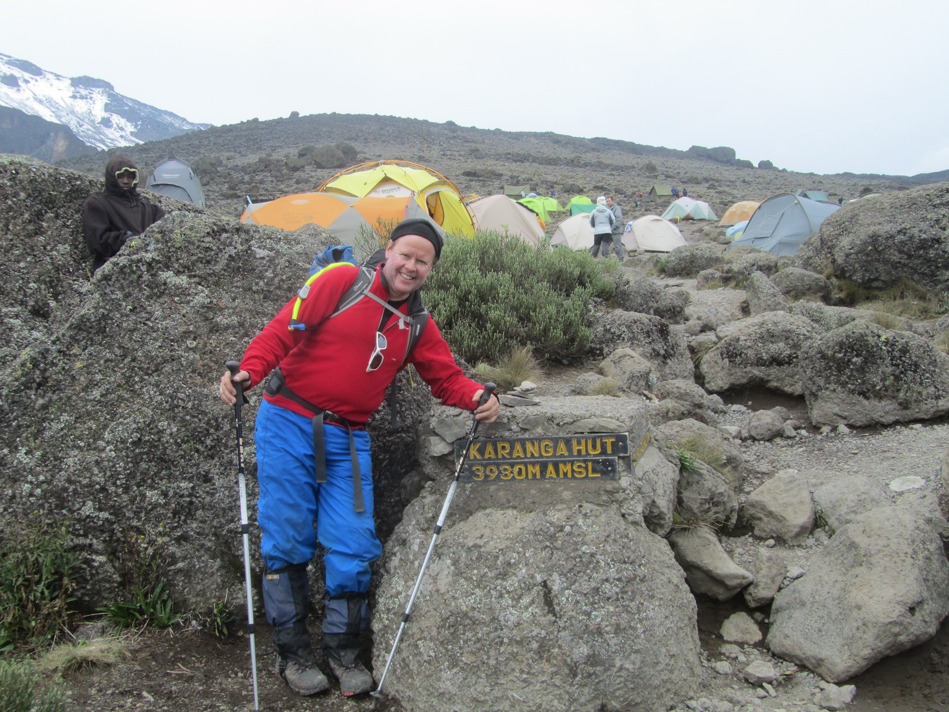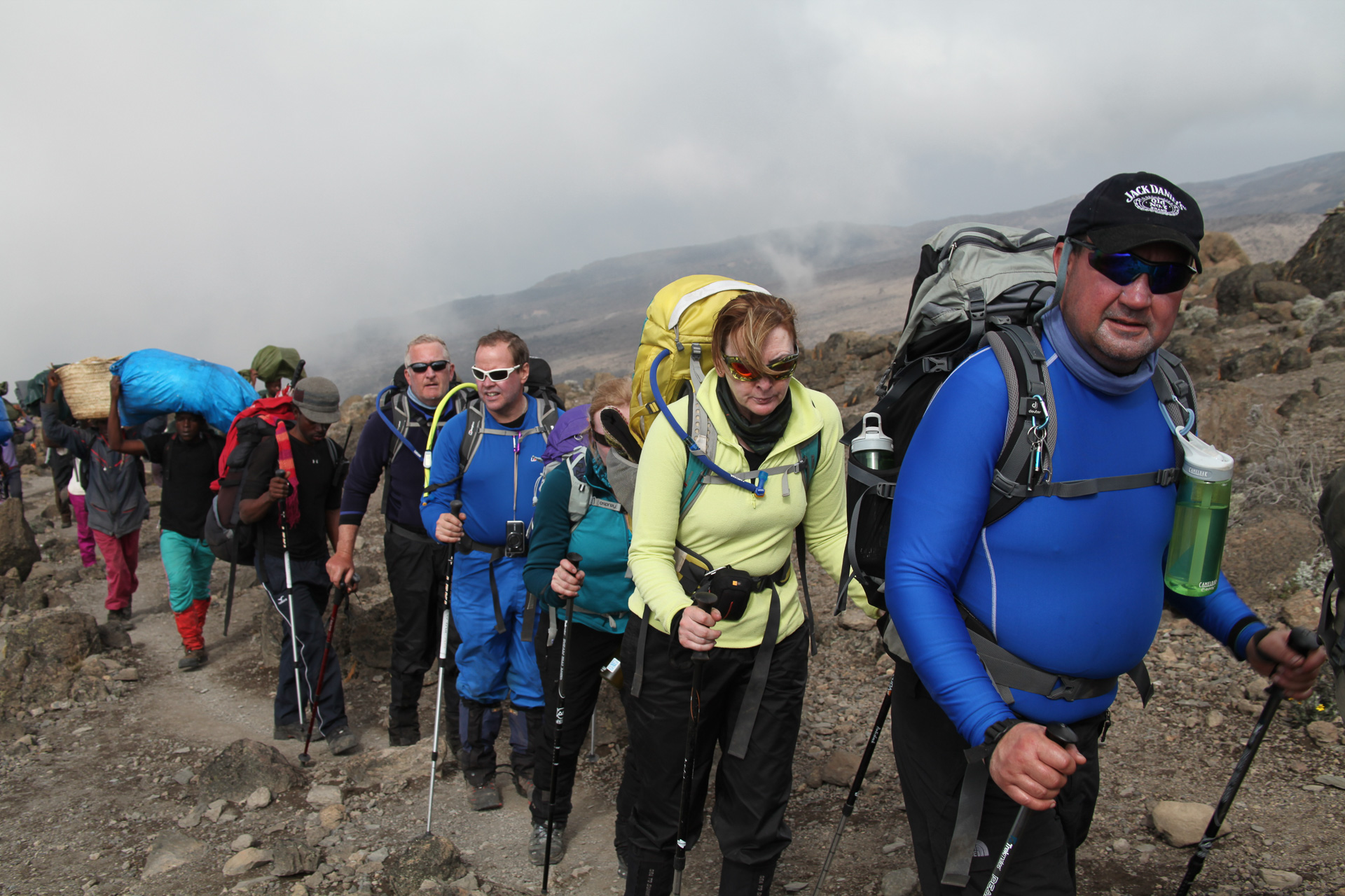 Then we had to come down. Nothing could have prepared us for the brutal, four hour, slip, slide and march through ice, snow, slush, mud and scree which was every bit as hard as the climb. We eventually collapsed into our tents at around midday for two hour’s sleep before a further knee-jarring four hour descent to Millennium Camp at 3790m.