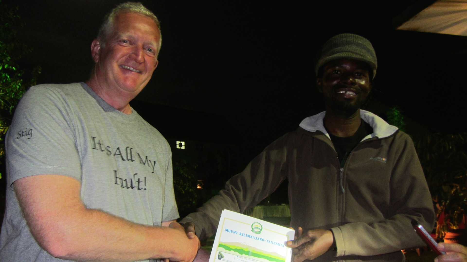 Perhaps inspired by a clear view of the mountain, the porters treated us to their repertoire of Kilimanjaro songs.