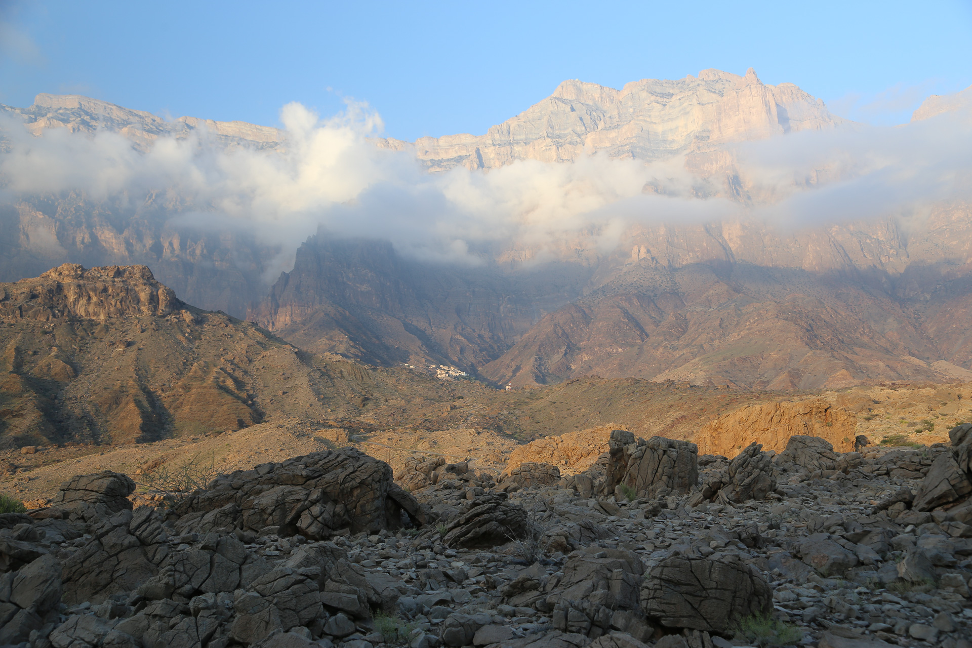 This was the scene on Saturday morning as the north face of Jebal Shams catches the early morning sun.