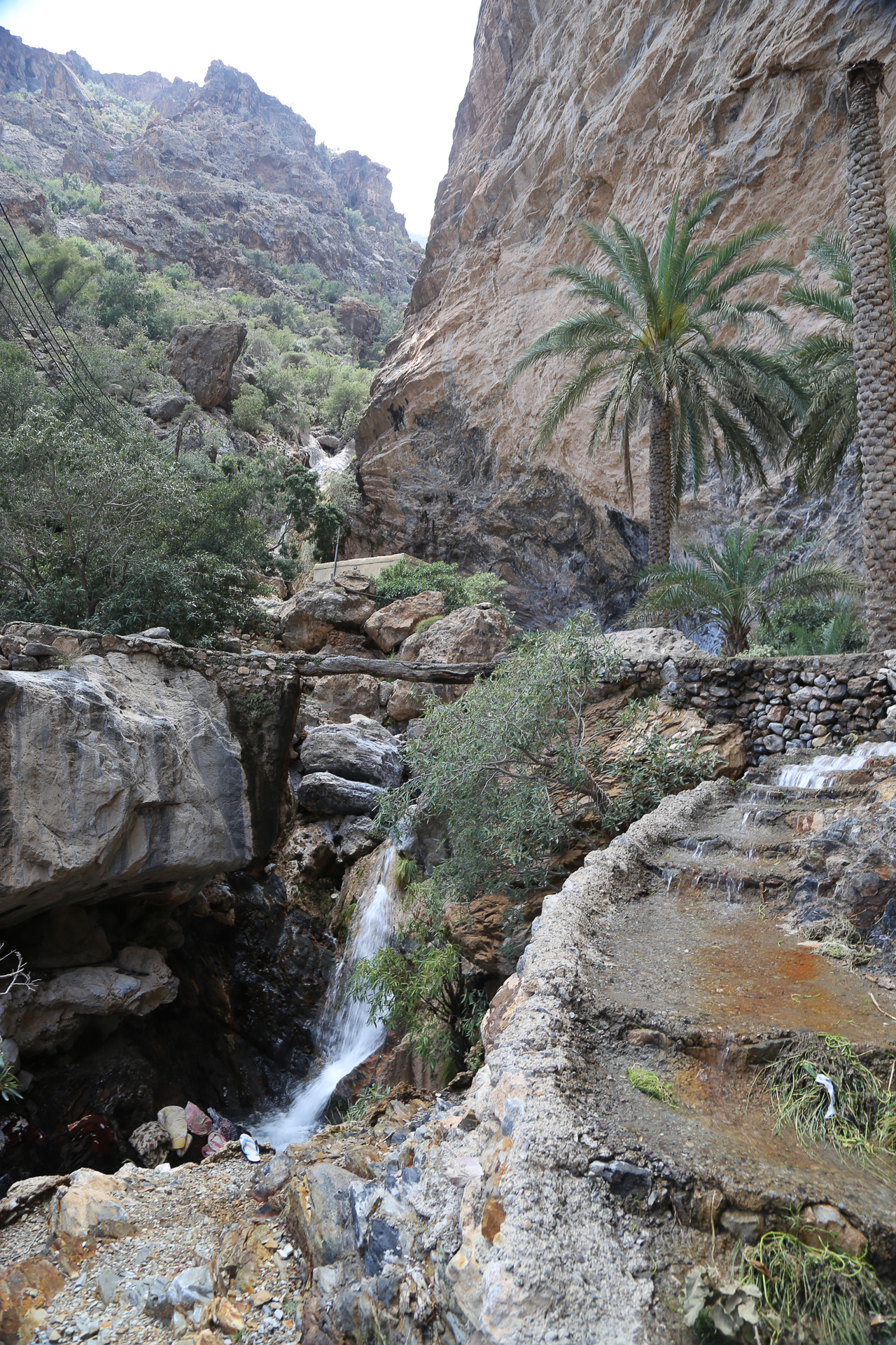 Look carefully in the panorama above and you can see the road to the right of the village, above the terraces and below the cliffs. In the village the recent rains meant that the steps between the houses were miniature waterfalls.