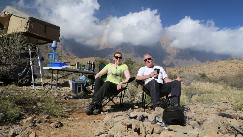 Rain during the week had brought a great deal of water to the mountains – and a fair bit of damage. The road into this area is actually the bed of the wadi so our route in meant driving up the river. All good fun. Sue’s strategy for river driving is to accelerate whenever the water gets deeper. This seems to work well for us but not so well for oncoming traffic. I can still see the look of horror on the face of the kind Omani gentleman in the oncoming vehicle who had stopped to allow us to pass and foolishly wound down his window to wave us through. The bow wave that Sue created as she powered through would have rivalled all but the largest tsunami and the guy in the pure white kandura never stood a chance.