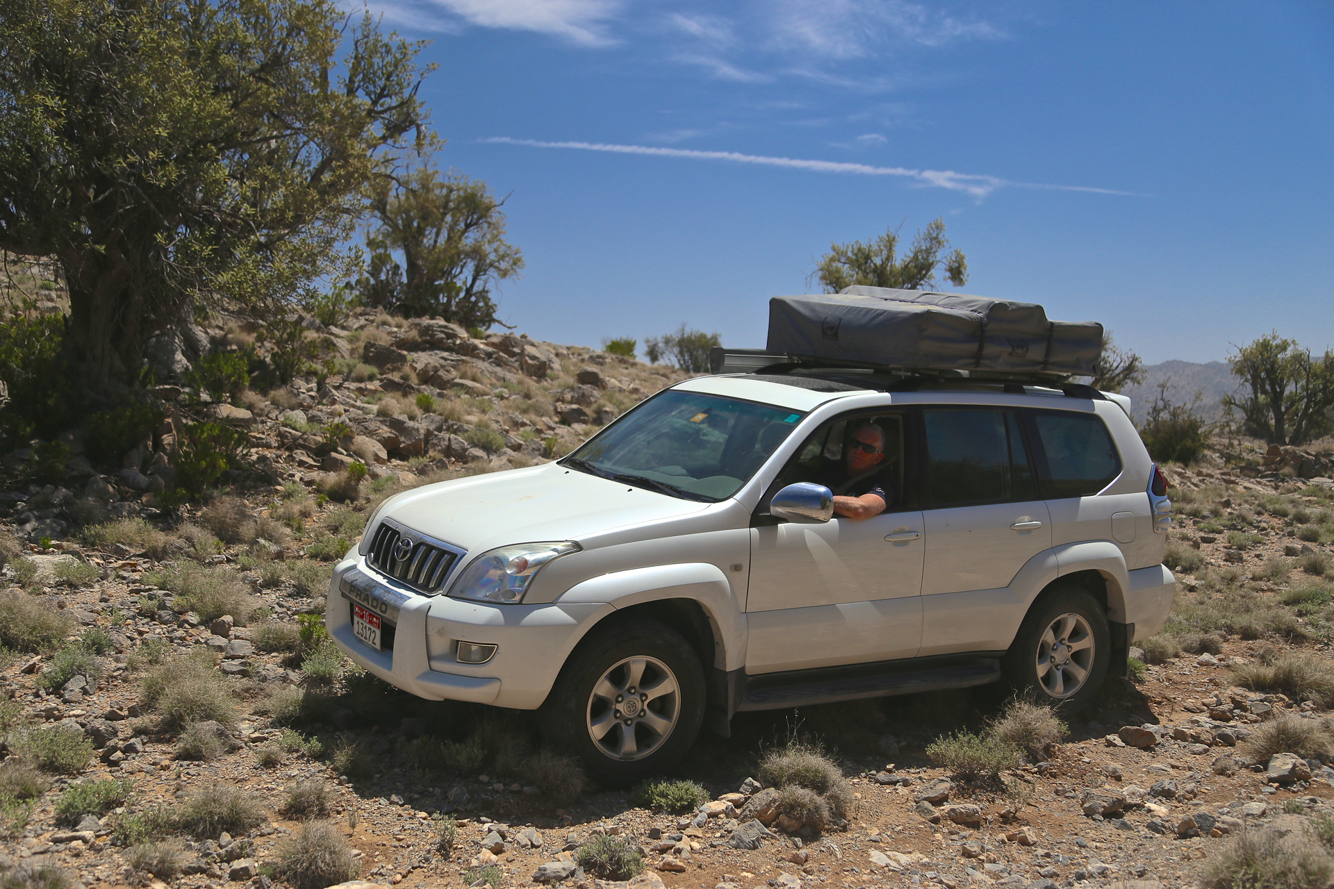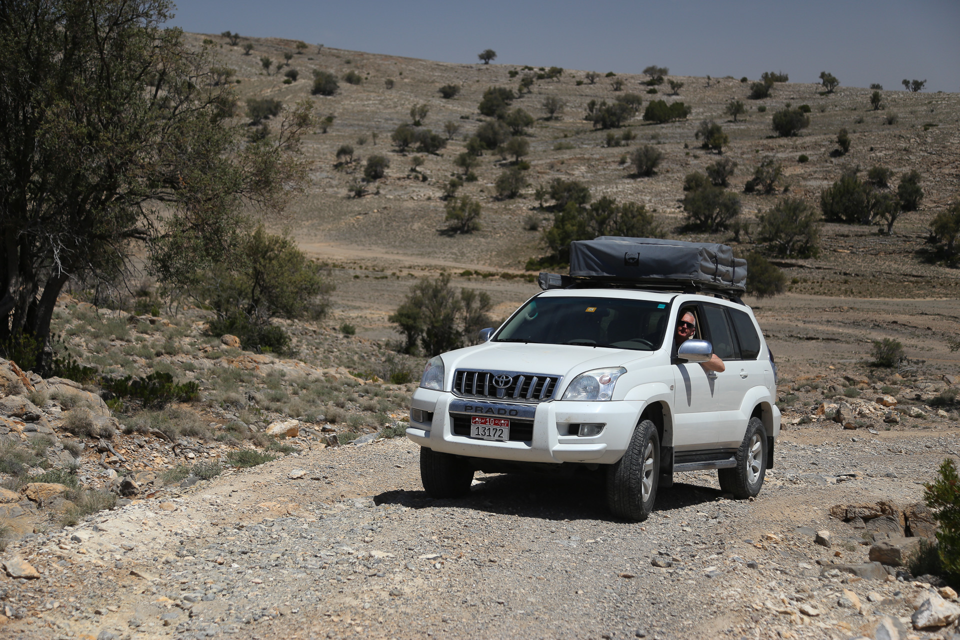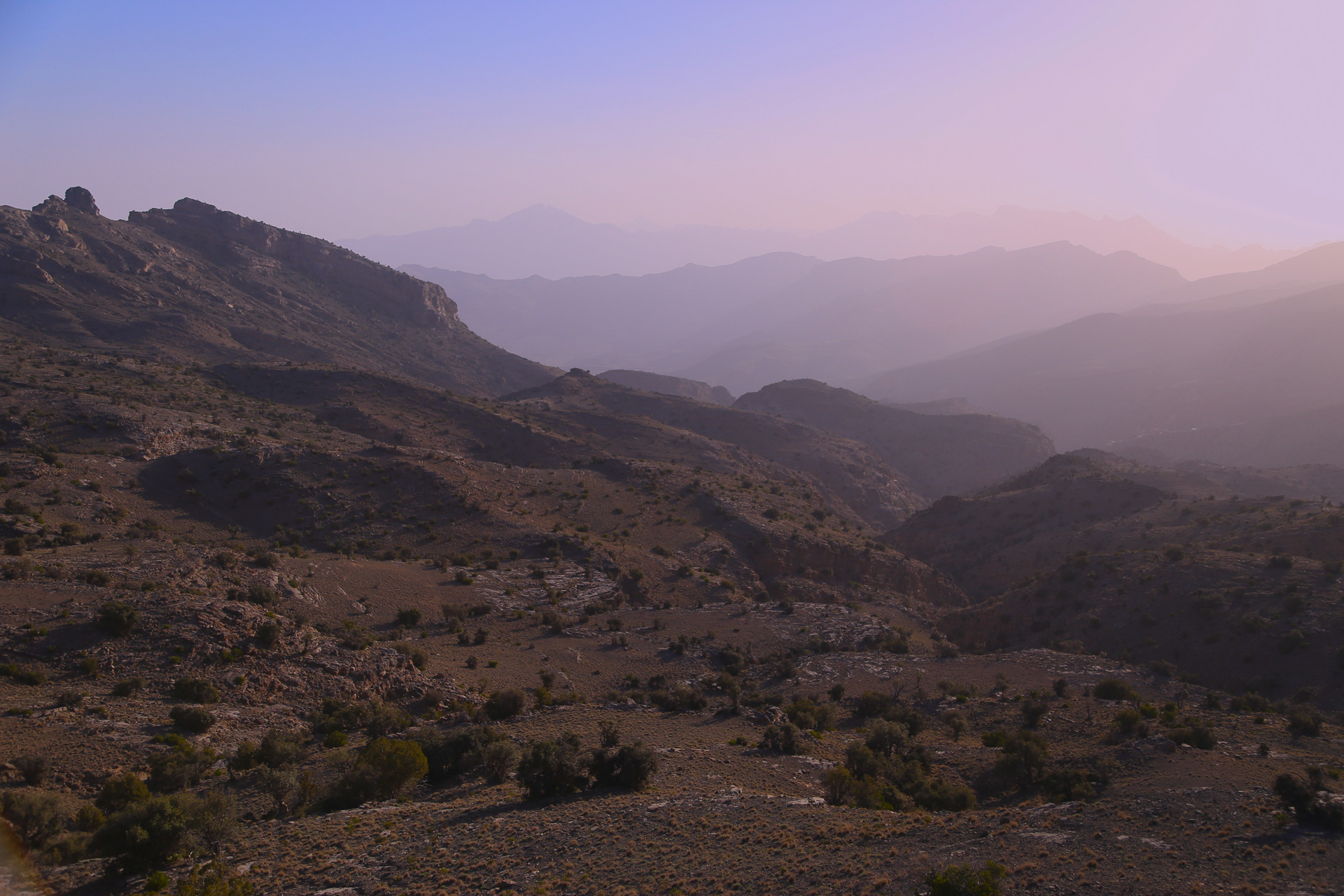 I treated myself to a days leave so that we could have a reasonably early getaway and so reach Jebel Akhdar in daylight. This gave us enough time to find a new campsite in a secluded dip with views to distant mountains.