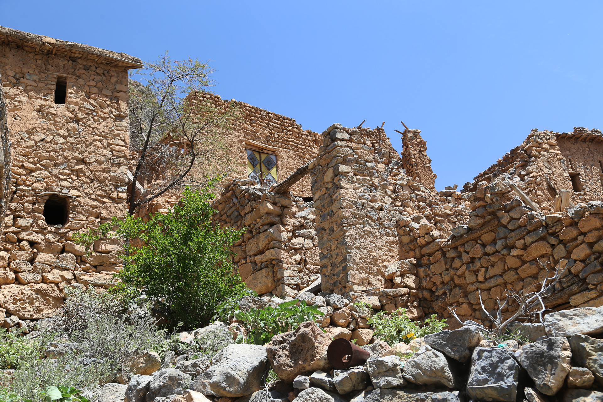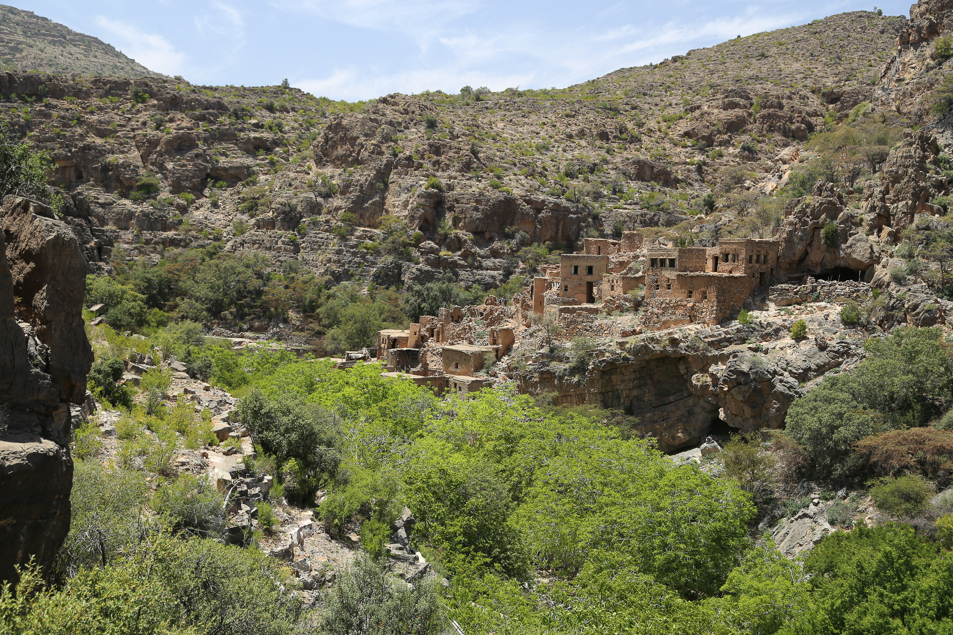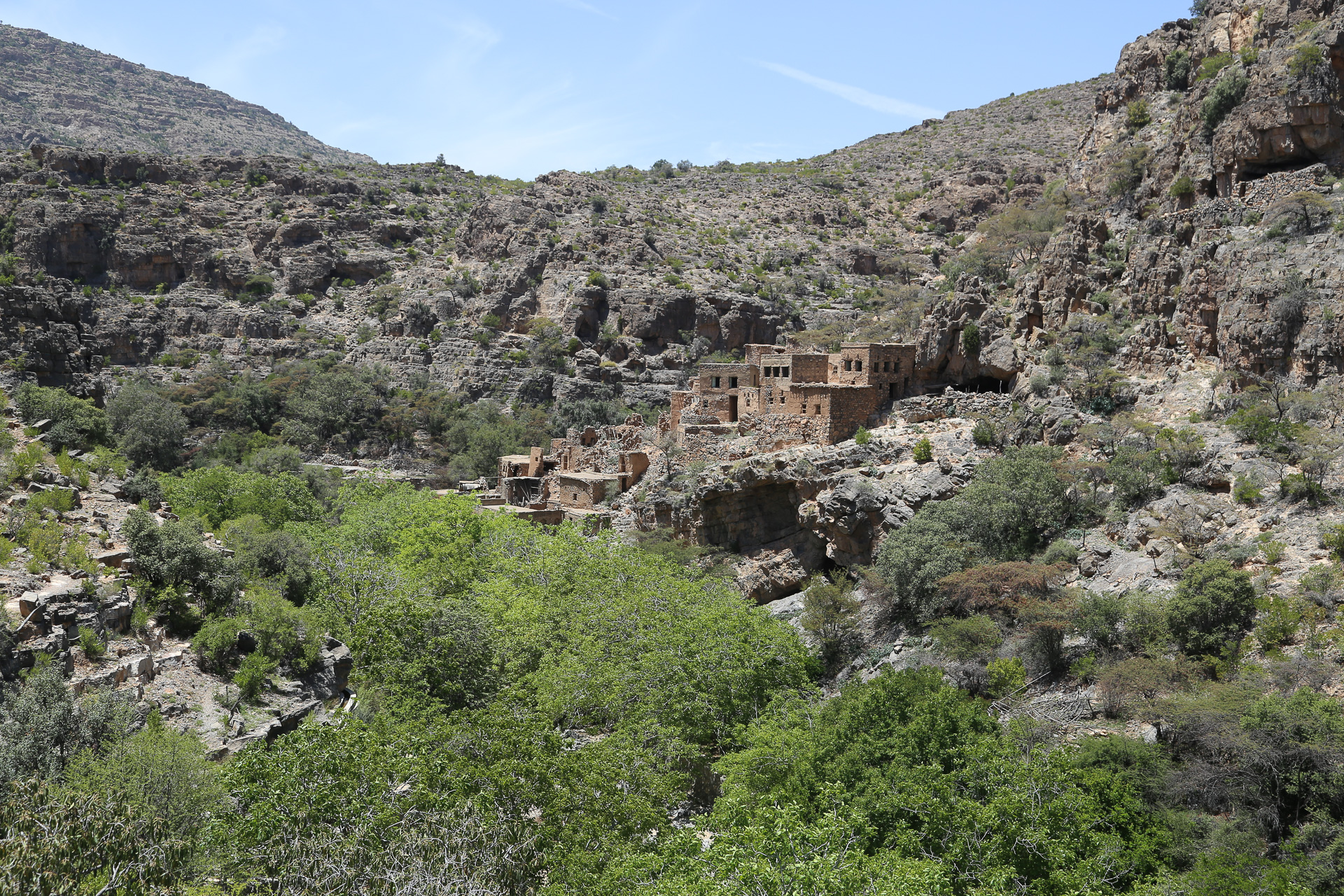 We finished the weekend by descending just a few hundred metres to the lower Sayq Plateau and revisiting the abandoned village of Bani Habib. Last time we were here we made a rapid exit from the wadi without exploring anything as thunder clouds gathered around us. We got off the mountain in torrential rain only to be trapped by rising floodwaters 100 km away.