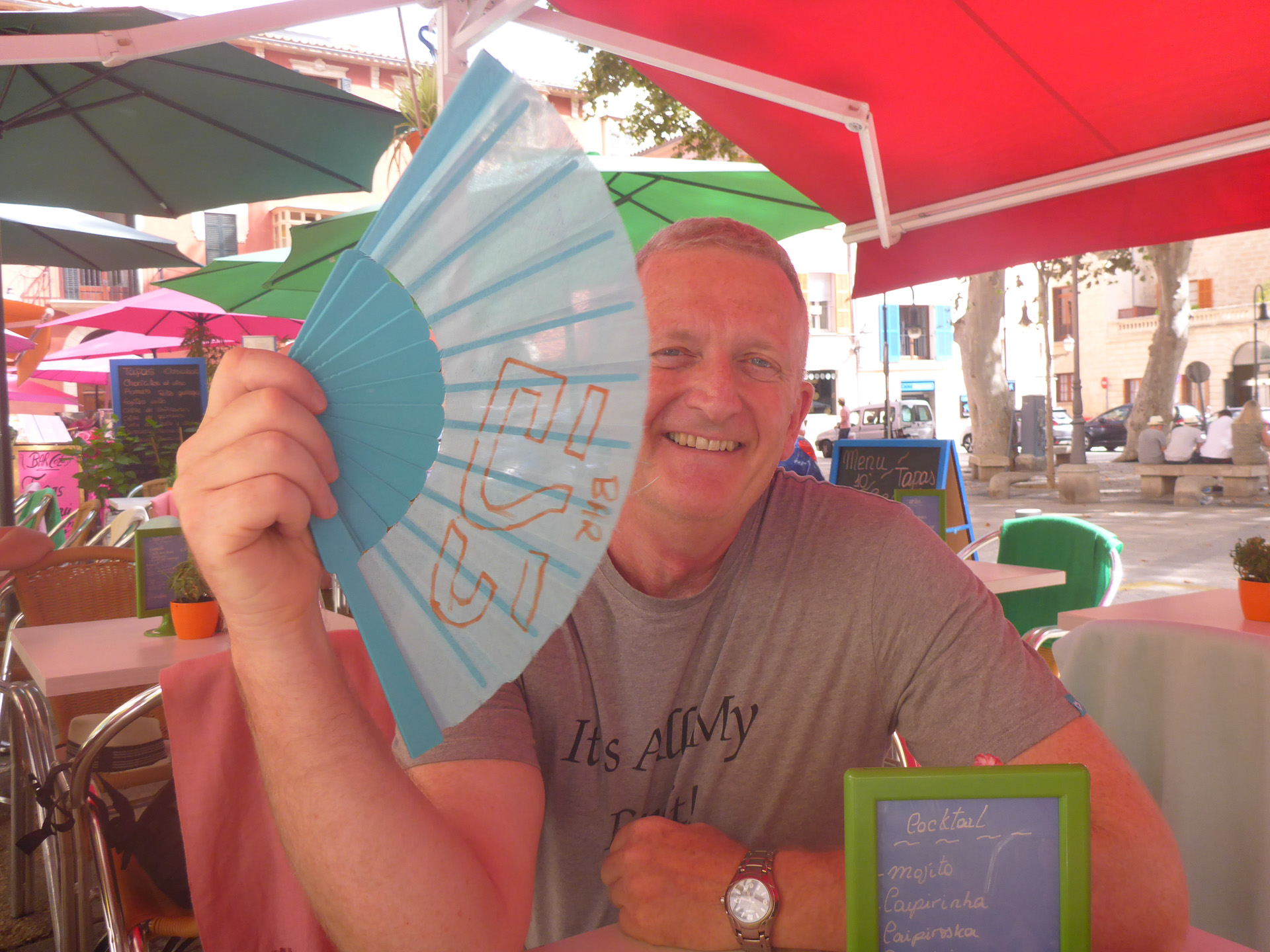 A short walk around some of the old streets filled in some time while waiting for Claire and Jonathan to arrive. Then beer in a quiet plaça where all tables had their own air conditioning system.