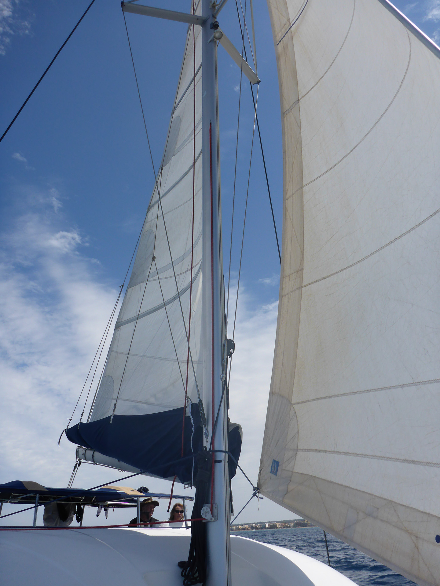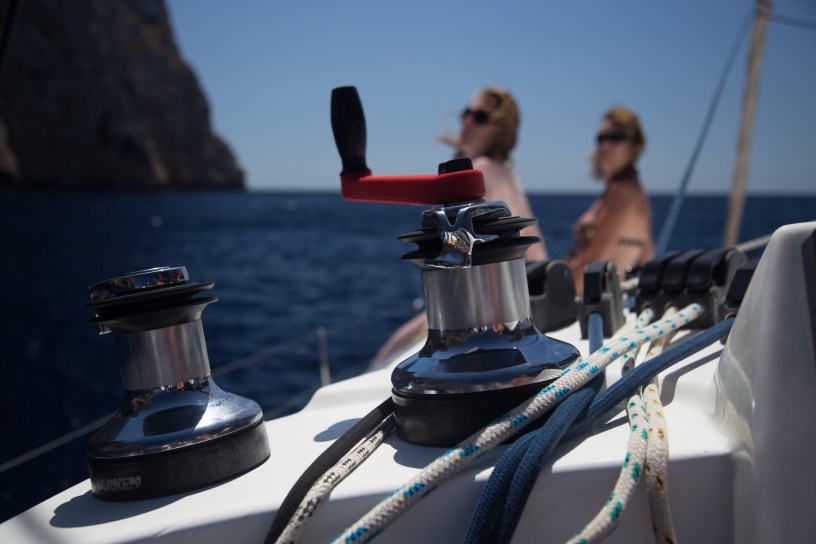 We cautiously manoeuvred the boat away from the berth and out of the marina without making fools of ourselves. With the first test over we then motored well out of sight of the charter company before attempting to rig the main sail. There seemed to be an awful lot of ropes but somehow we got it all figured out and ended up actually sailing and with enough confidence to unfurl the gib.