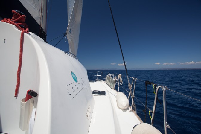 Mid afternoon we finally got onboard a Lagoon 380 Premium S2 (2008). Our home for the next week. Not wanting to repeat our Croatian experience of anchoring in the dark on our first night we opted to stay in the Arenal marina. But with plenty of daylight ahead of us we decided to take the boat out for a few hours to get a feel for it.