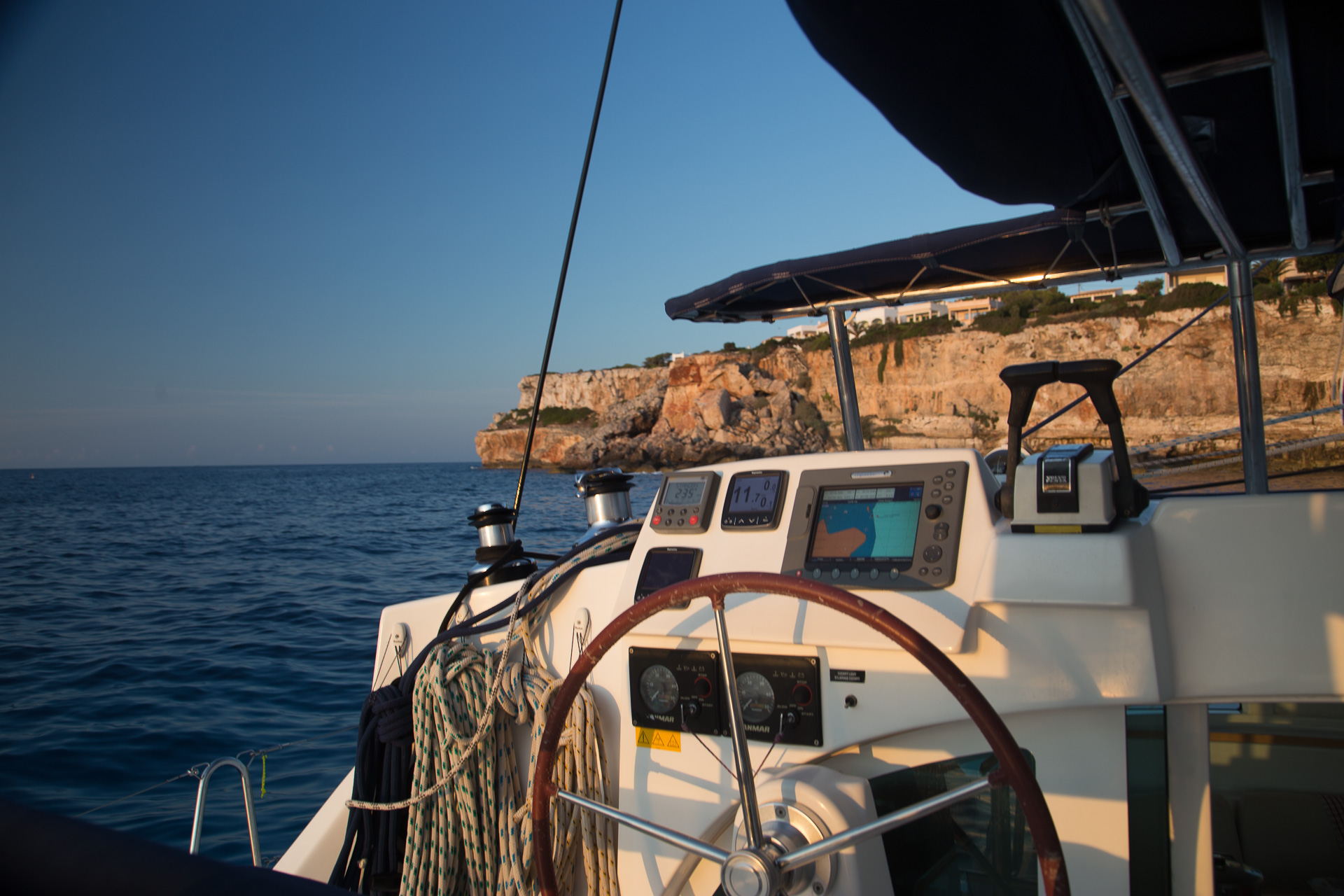 Heading across the Bay of Palma we planned to spend the next few days exploring the southwest peninsular. It was going to be a long sail (about 40nm) so once again we had breakfast en route with the autopilot engaged!