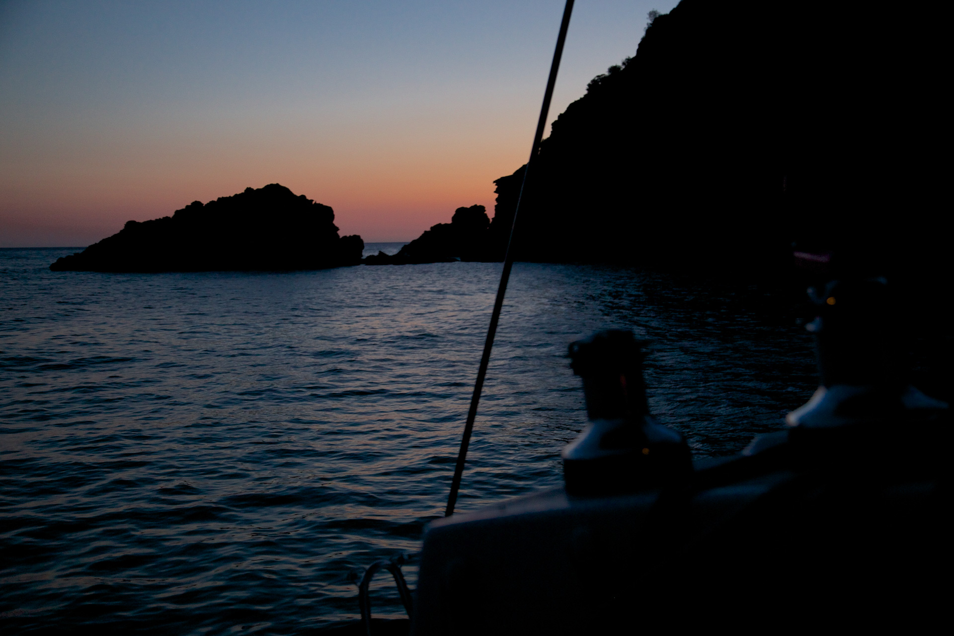 A terrible night –the narrow cala magnified the swell and for most of the night we were broadside on and rolling. To make matters worse, we had left the fenders down and they were constantly banging on the sides.