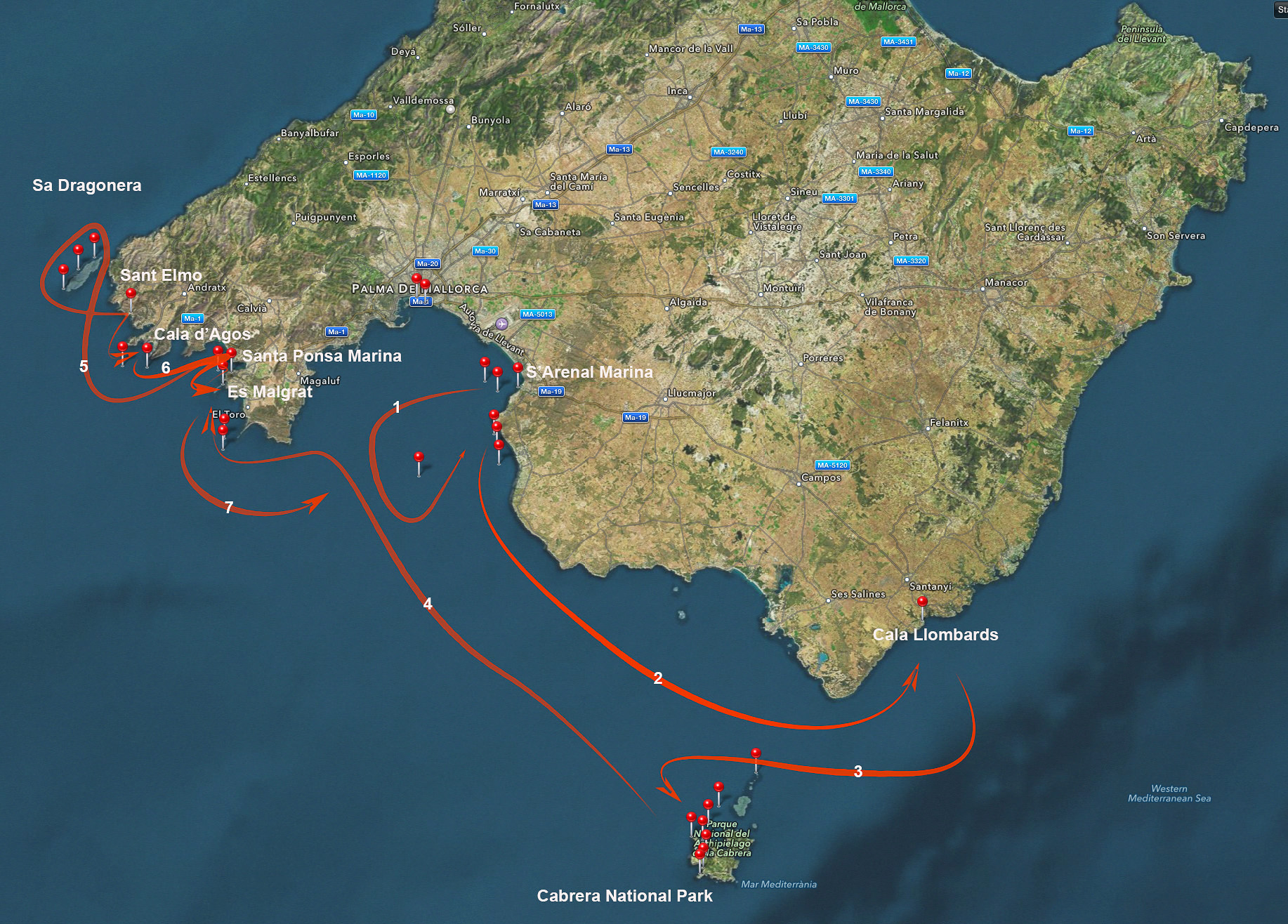 Next stop Sa Dragonera, an island off the southwest tip of Mallorca. The only access seemed to be a very small cala and with the wind strengthening, discretion seemed the better part of valour and we opted not to land but simply circumnavigate the island and enjoy the scenery.