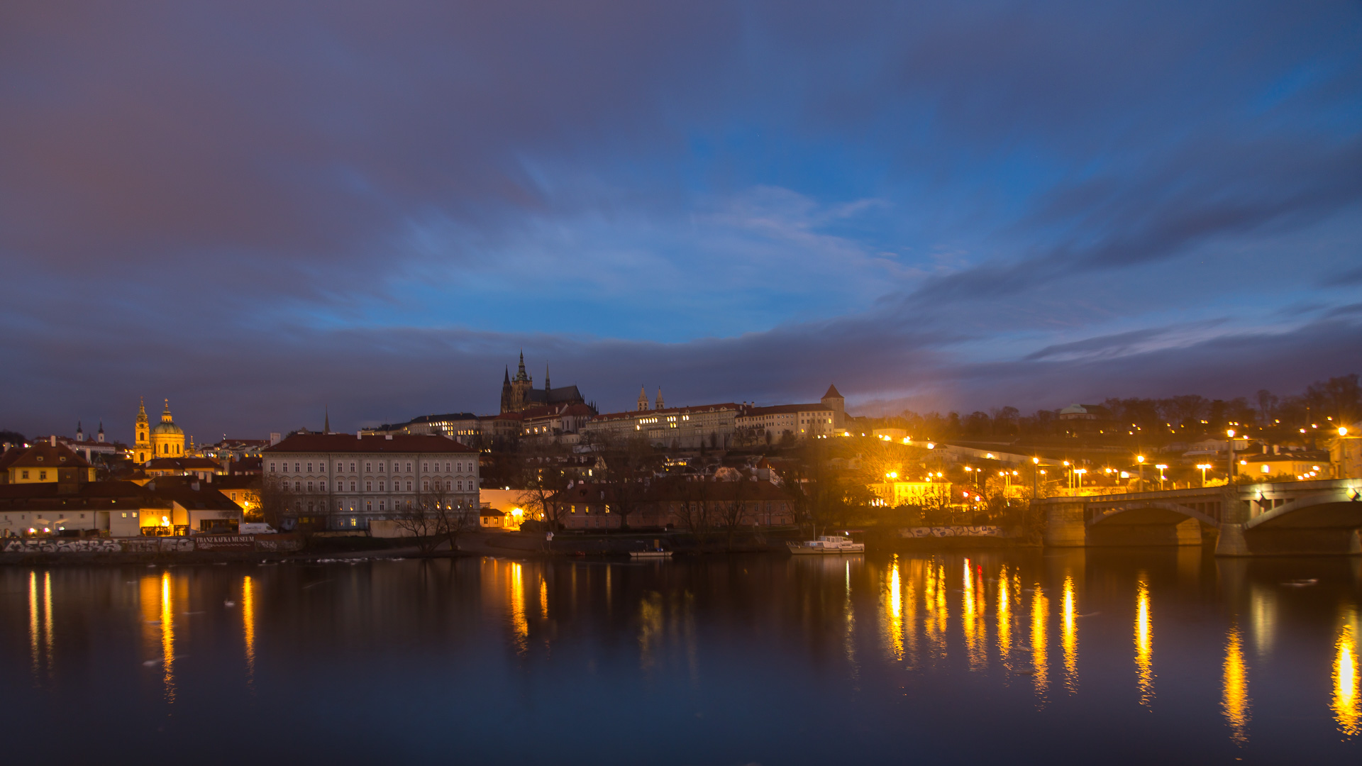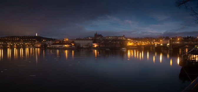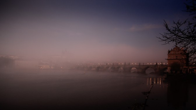 The white blurs in the photo above are sleeping swans drifting slowly on the Vltava river.